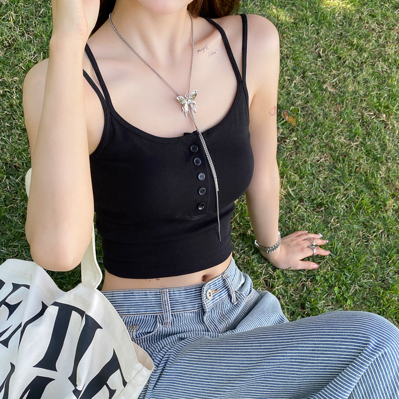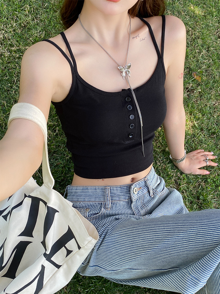 双肩带美背吊带夏季新款短款背心内搭一体带胸垫打底上衣外穿