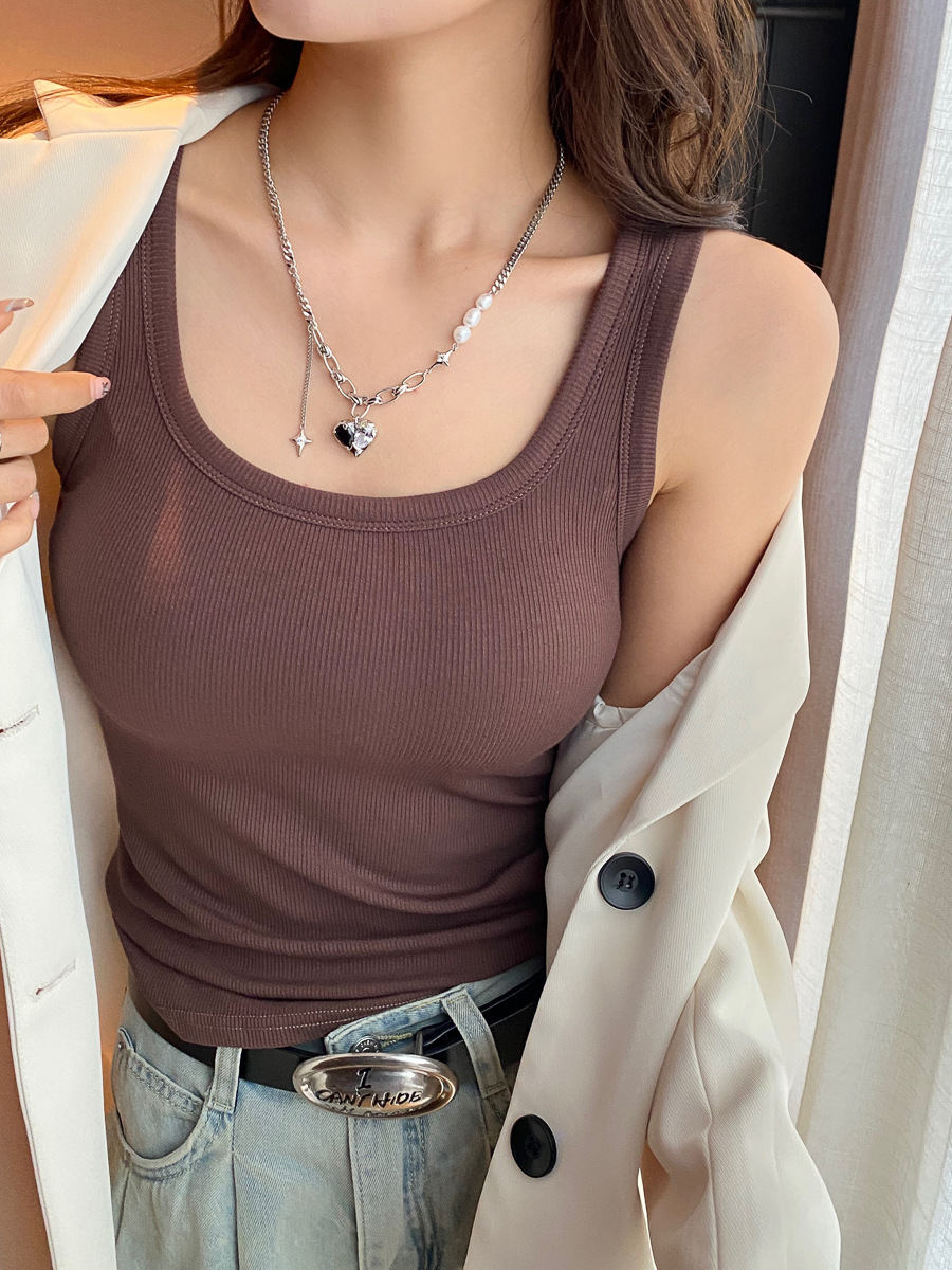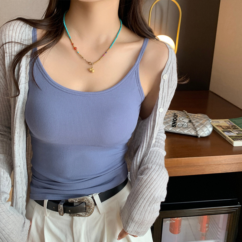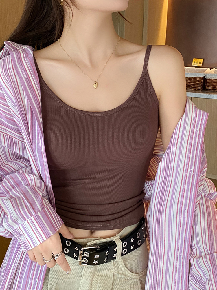 u领吊带背心女新款爆款外穿美背带胸垫一体内衣内搭打底上衣