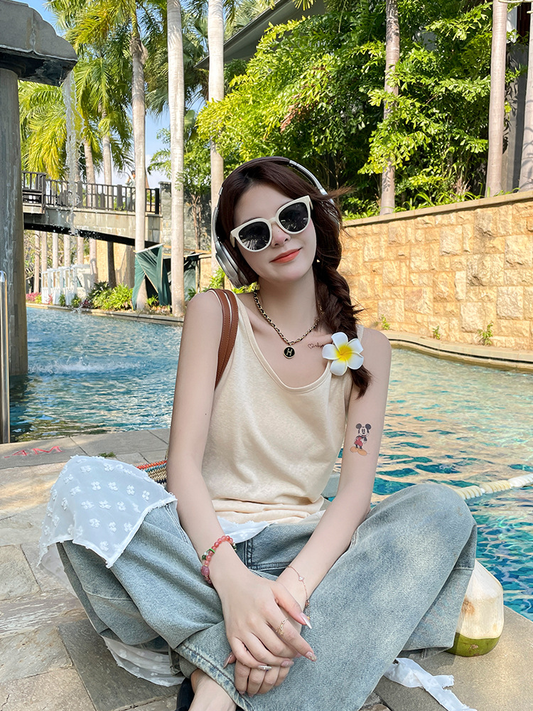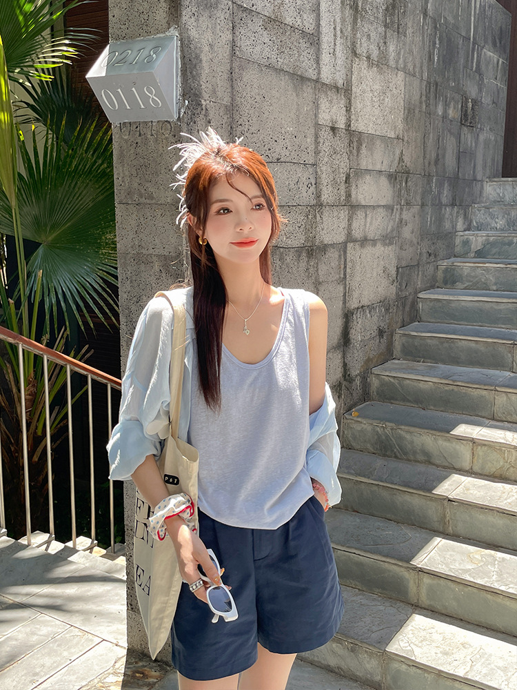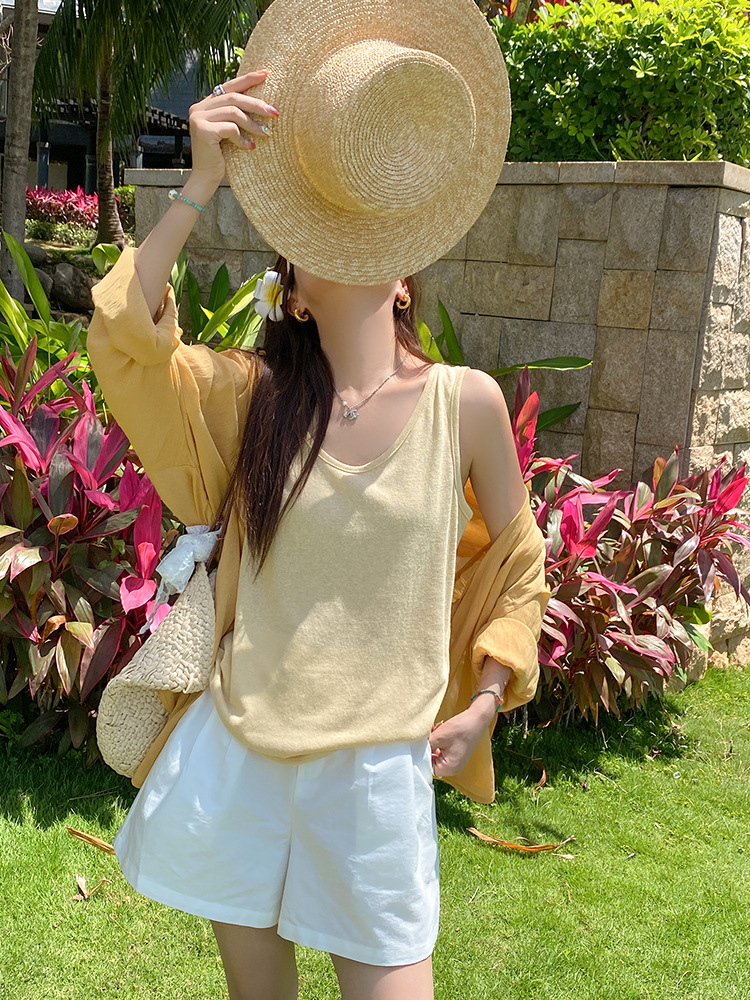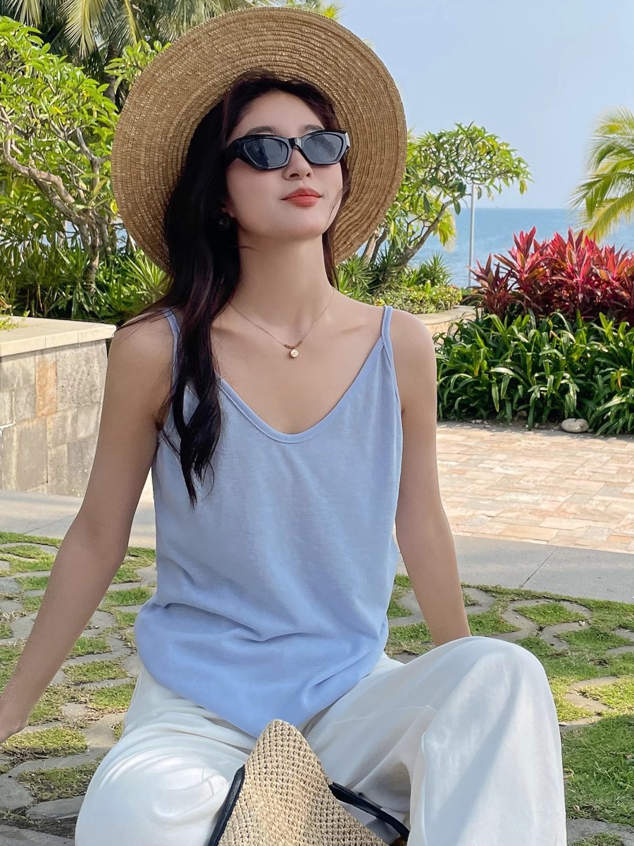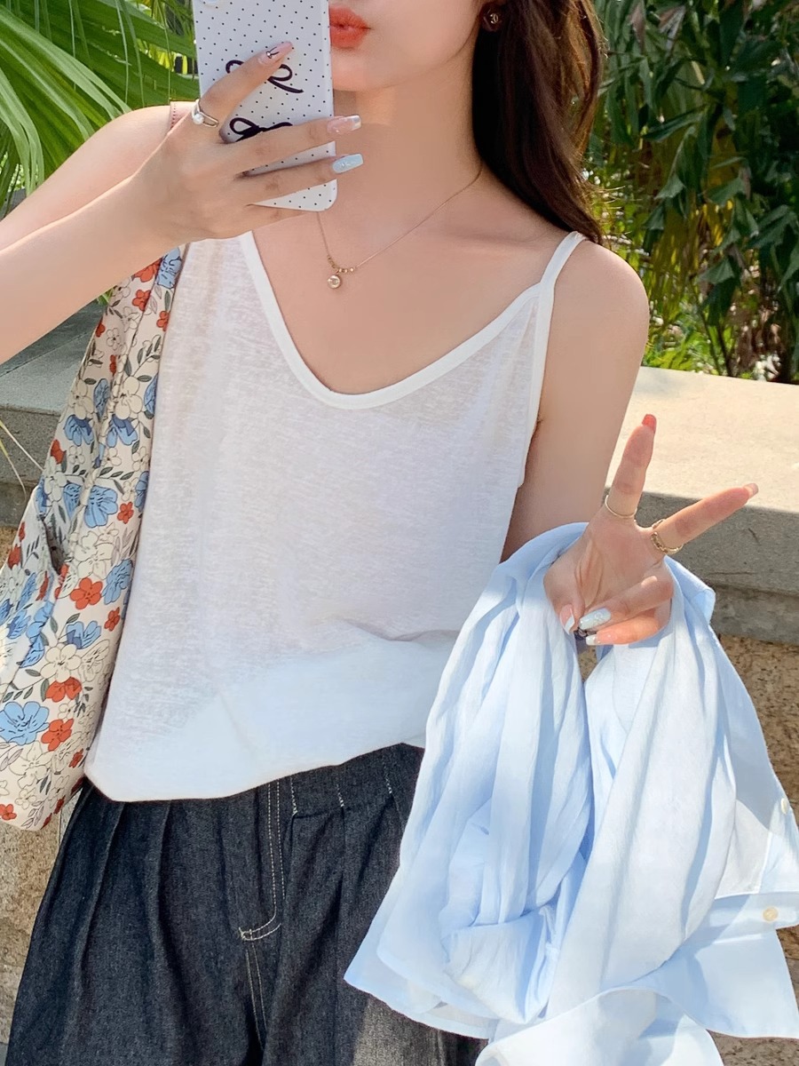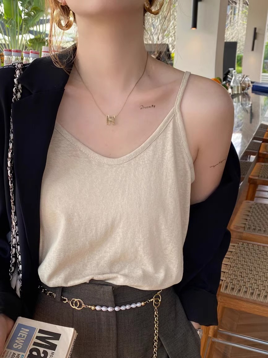 宽肩带吊带背心女夏新款内搭宽松遮副乳外穿打底大码棉麻上衣