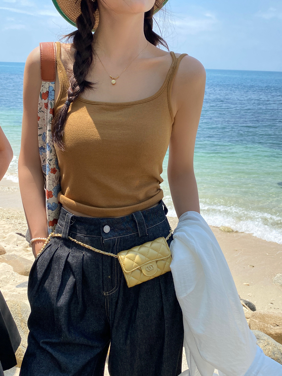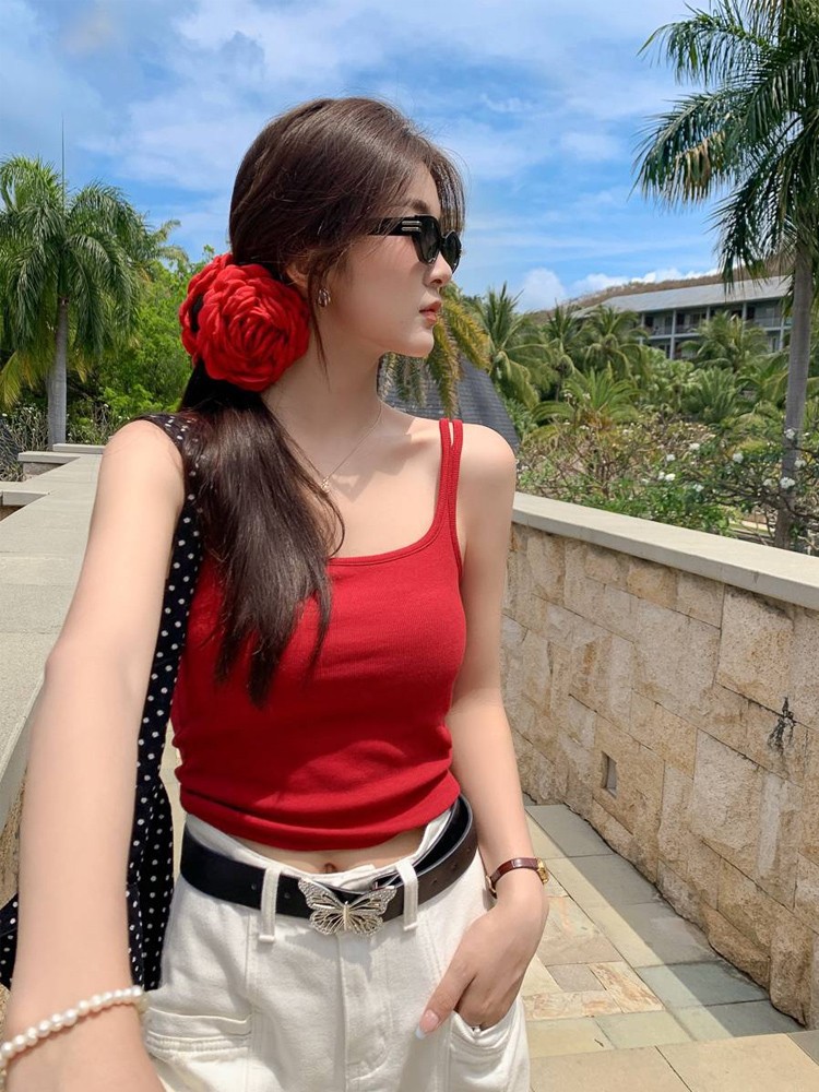 小背心女内搭夏季新款外穿美背带胸垫一体吊带红色打底短款上衣