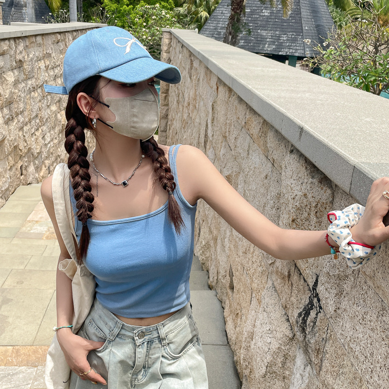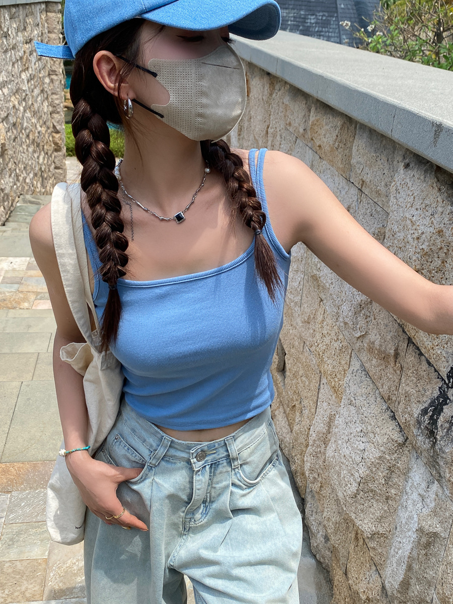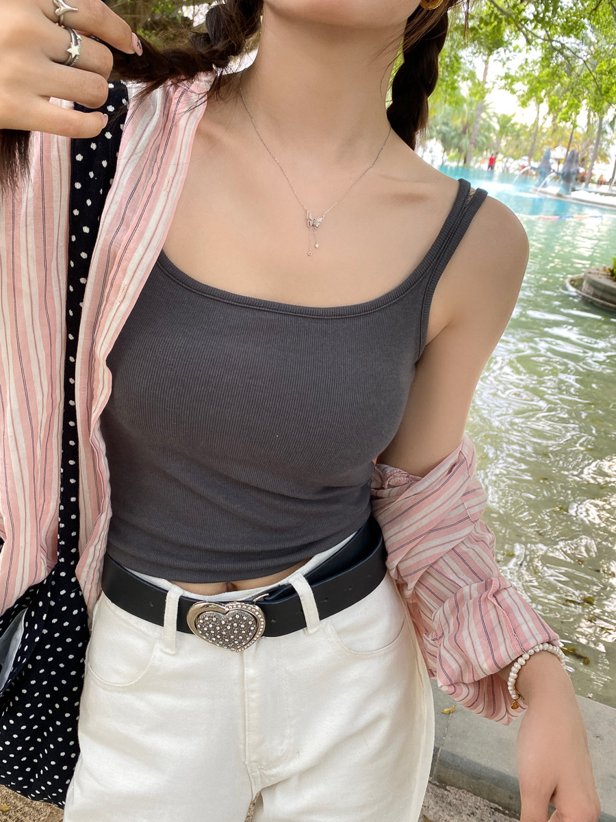 凉感美背打底吊带固定杯露脐款内衣女胸垫冰感背心可外穿免穿文胸