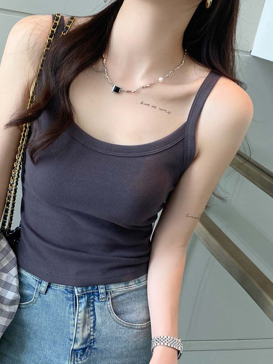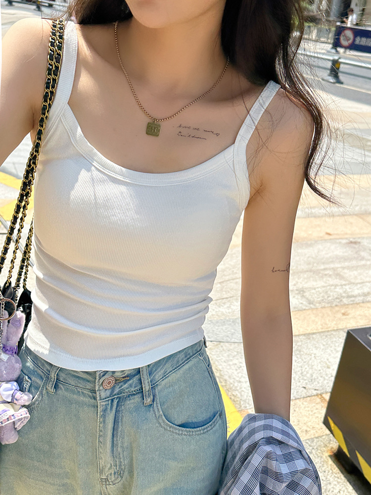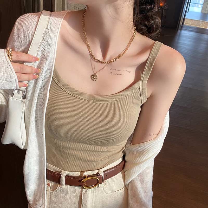 吊带背心女夏新款带胸垫内搭美背内衣文胸一体式外穿白色上衣