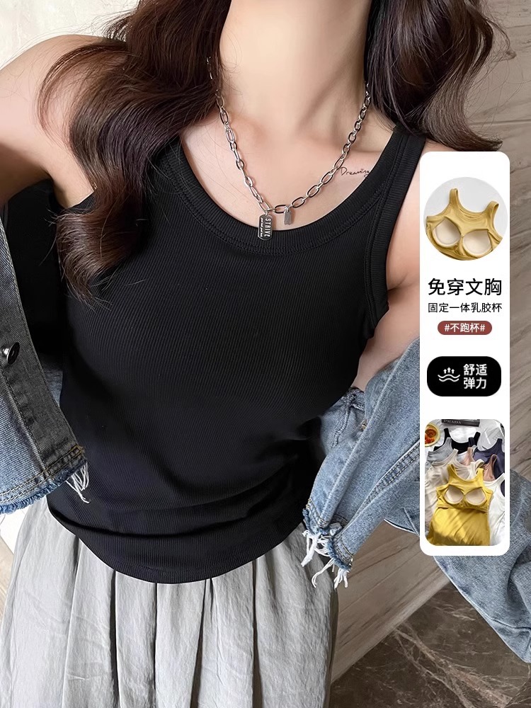 白色吊带小背心女夏外穿打底无袖t恤内搭纯棉遮副乳工字短款上衣