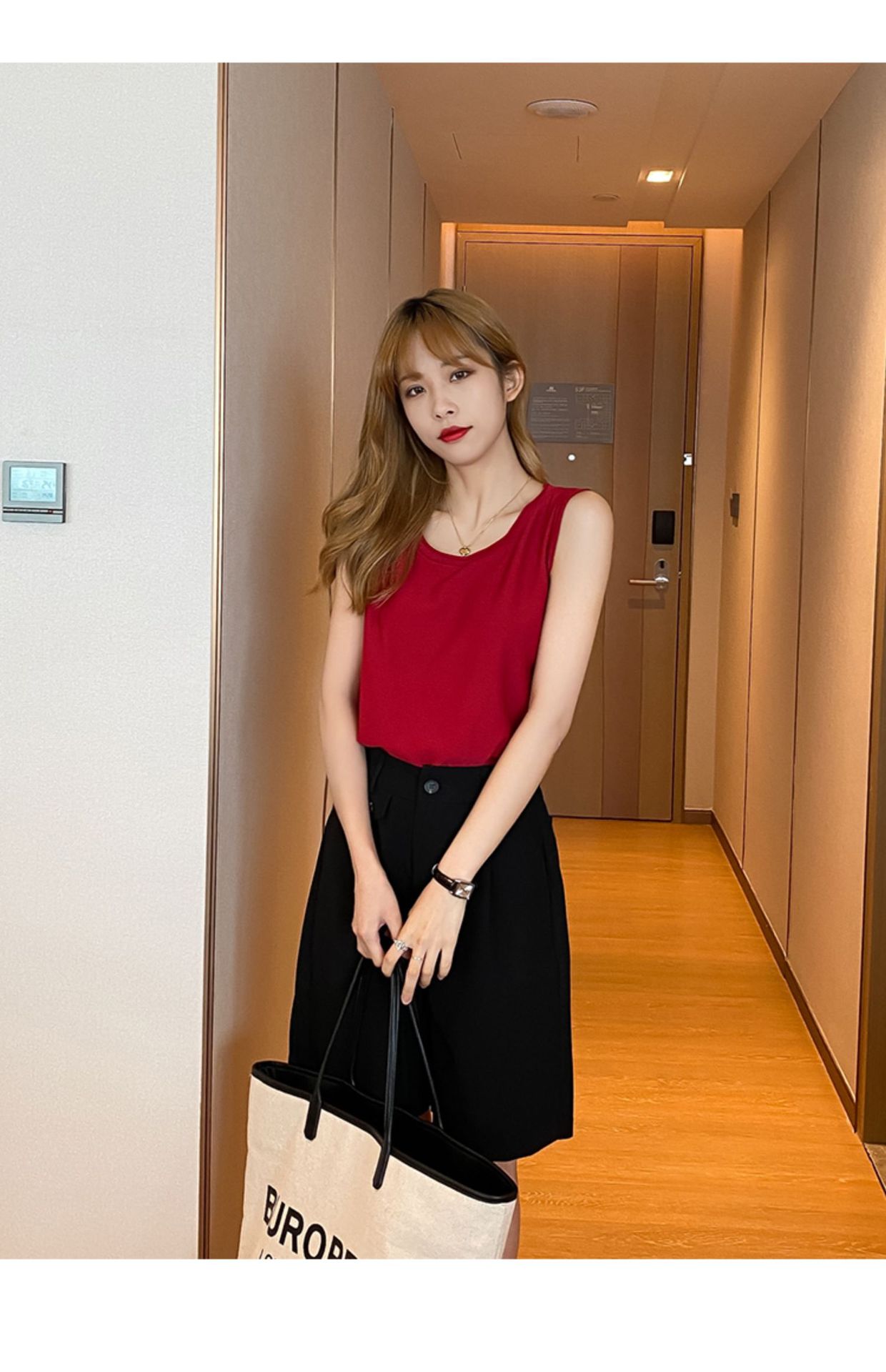 牛油果多巴胺吊带背心女夏外穿冰丝针织无袖t恤内搭宽松打底上衣