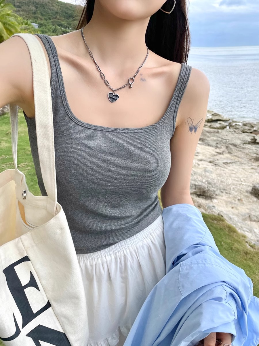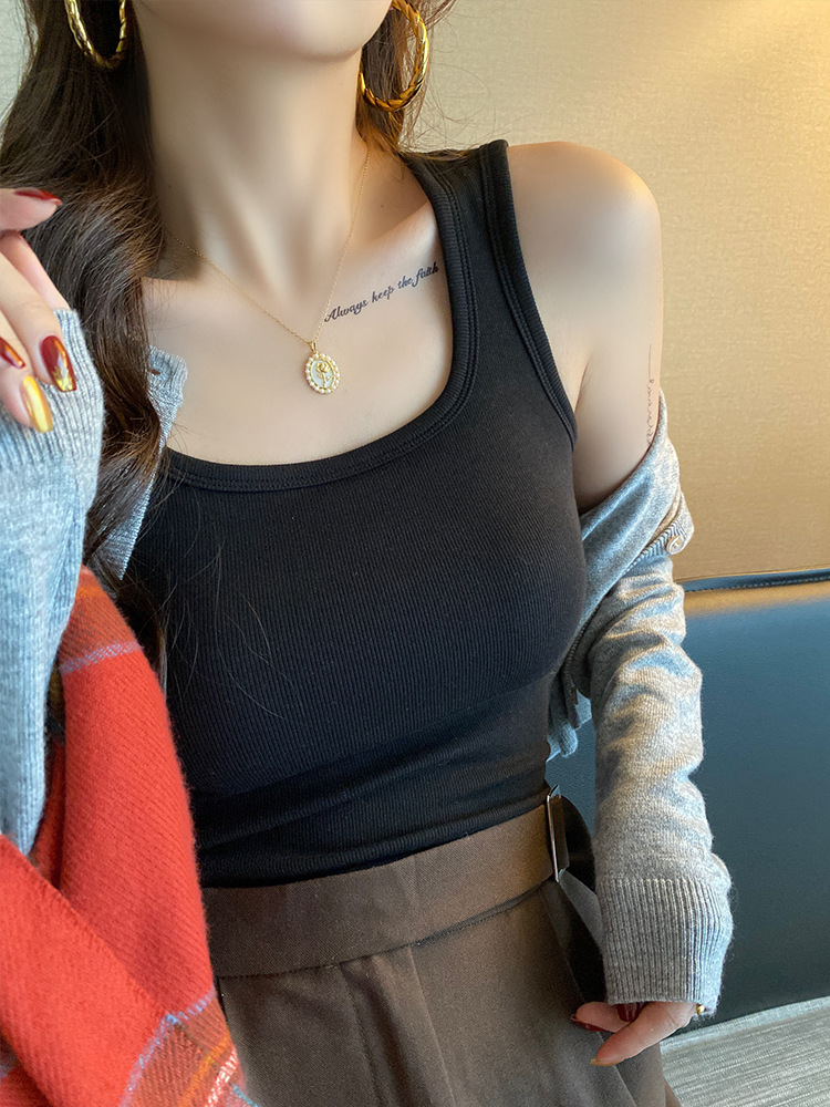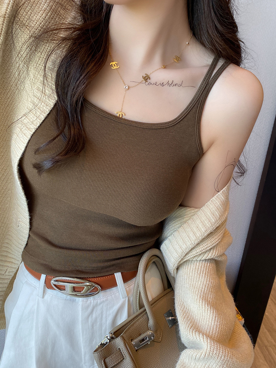 吊带背心女内搭新款爆款美背内衣文胸一体白色带胸垫打底上衣