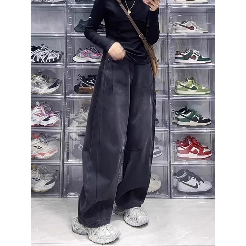 大码女装2025春季新款高腰直筒阔腿牛仔裤女胖妹妹宽松显瘦弯刀裤