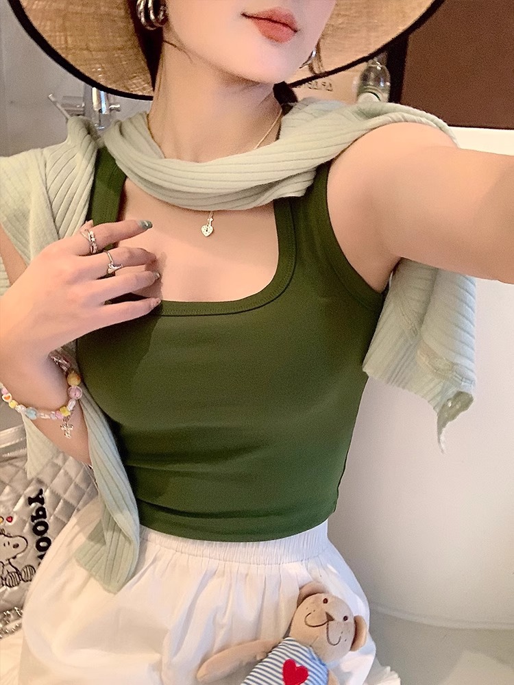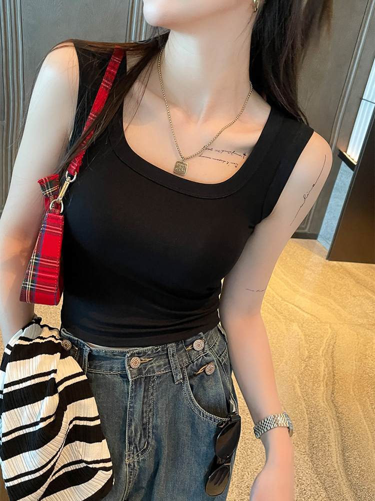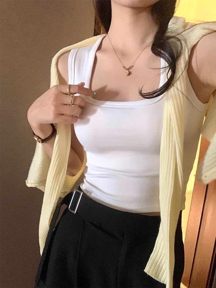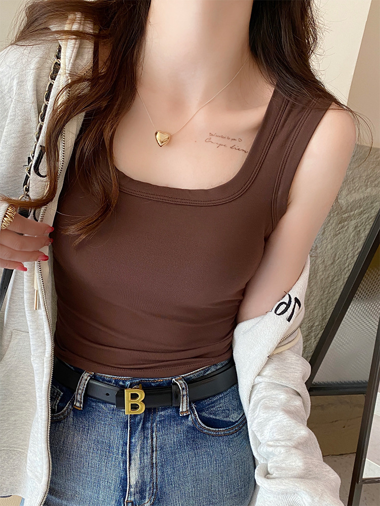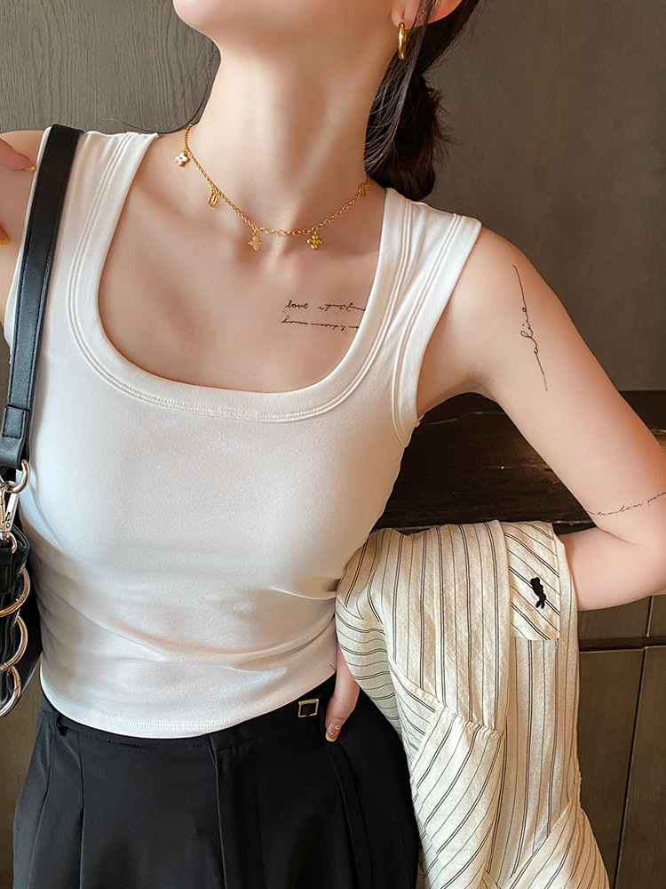 方领吊带背心女内搭夏季新款宽肩白色工字带胸垫外穿打底上衣