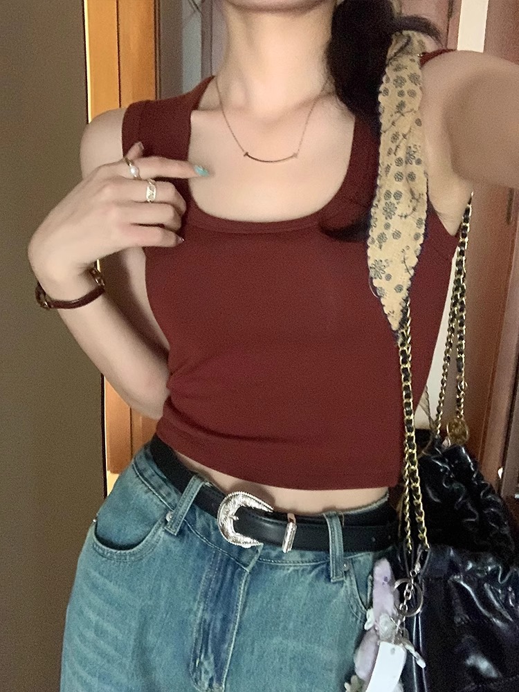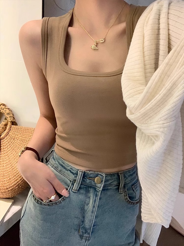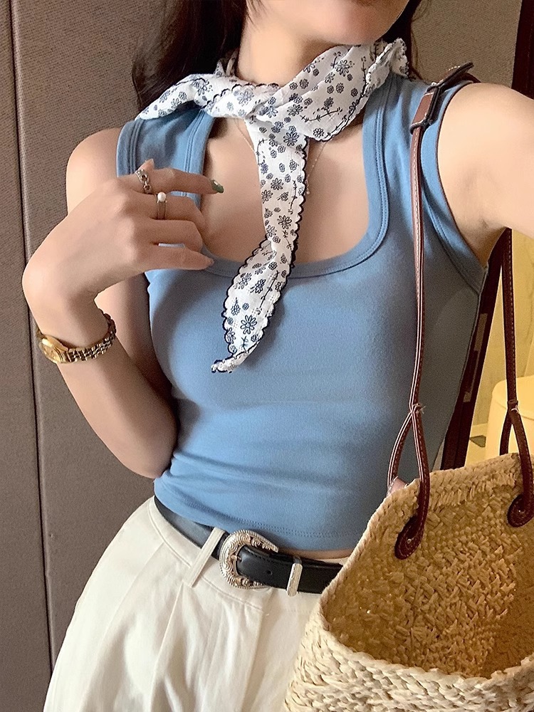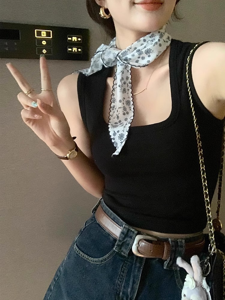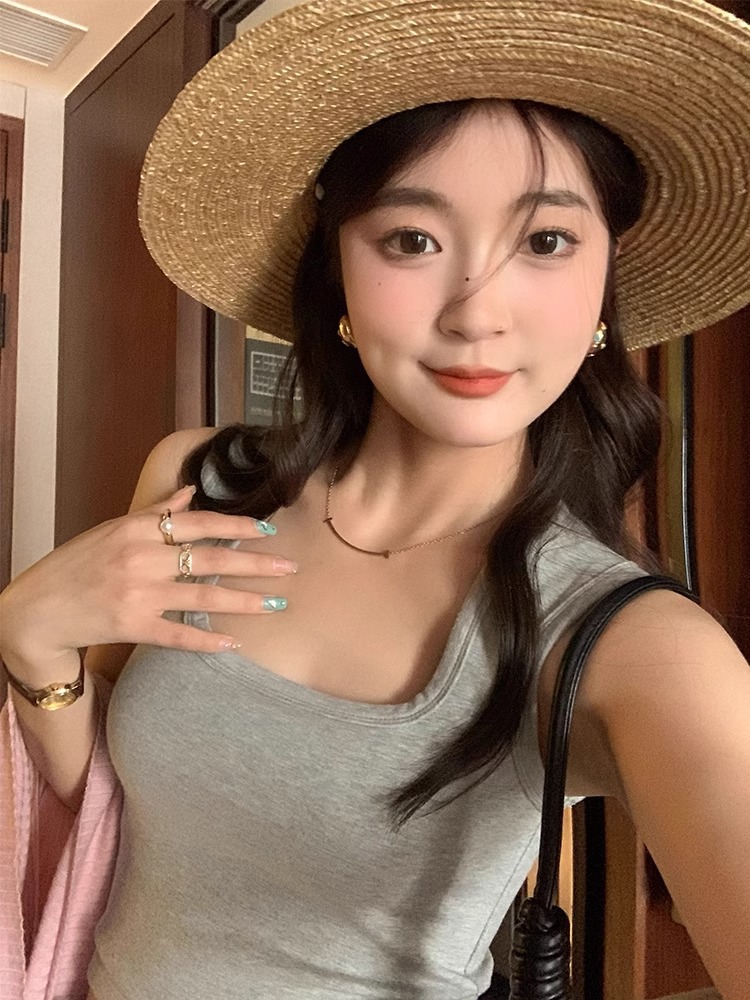 方领吊带背心女内搭夏季新款宽肩白色工字带胸垫外穿打底上衣