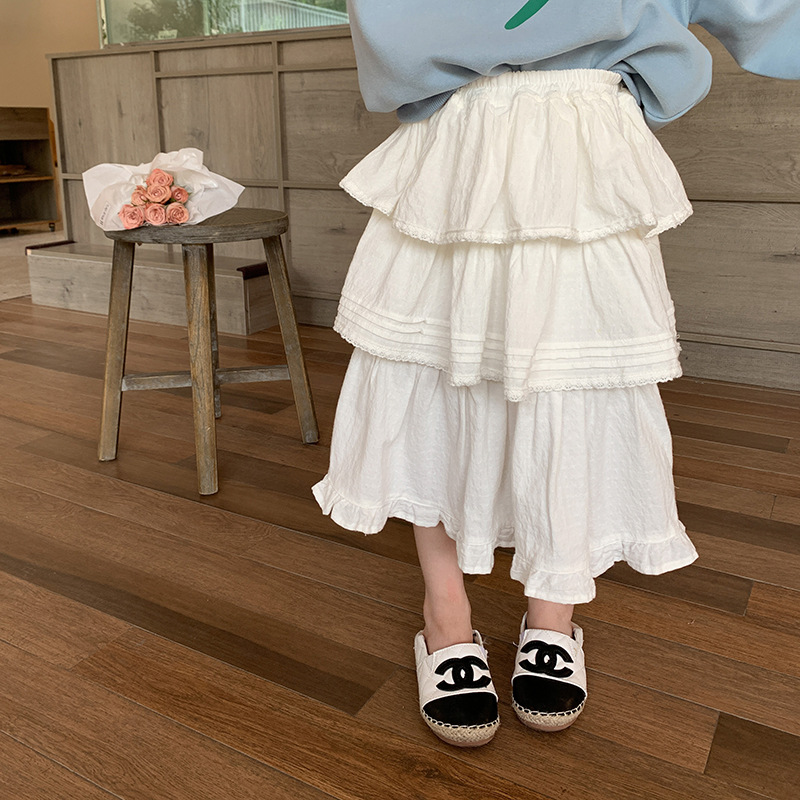 艾摩贝贝童装女童韩版层次感蕾丝边拼接提花中长款蛋糕半身裙