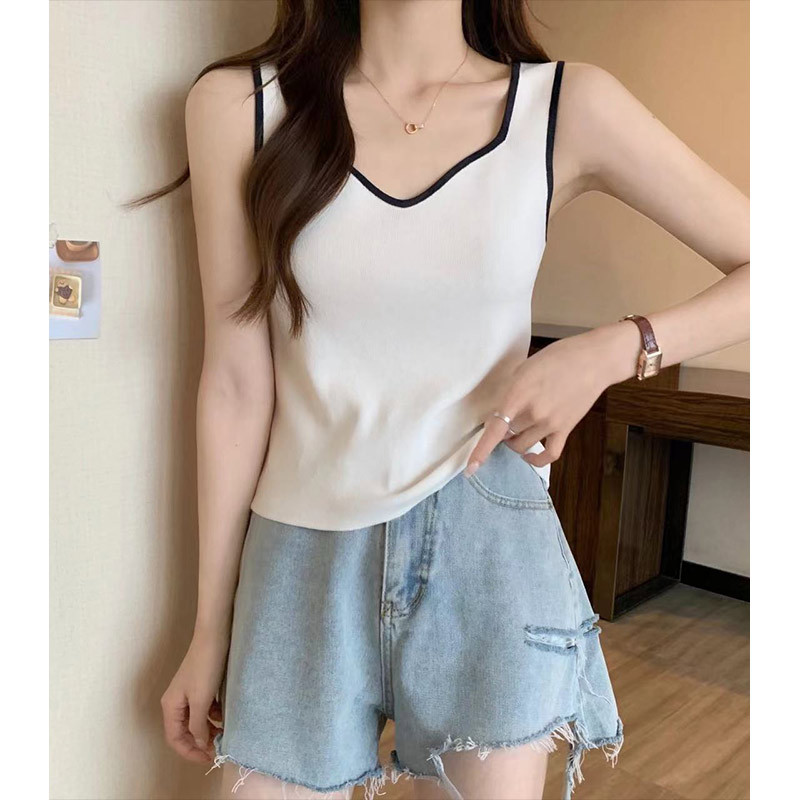 V领吊带小背心春夏新款法式设计感打底外穿内搭冰丝针织上衣