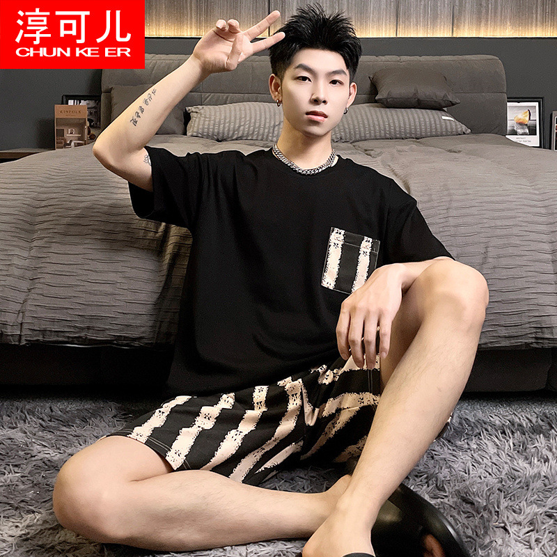 男士睡衣夏季短袖休闲男款家居服夏天薄款加大码夏款套装