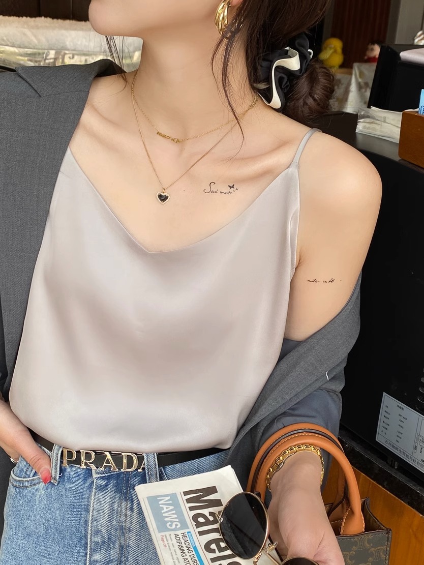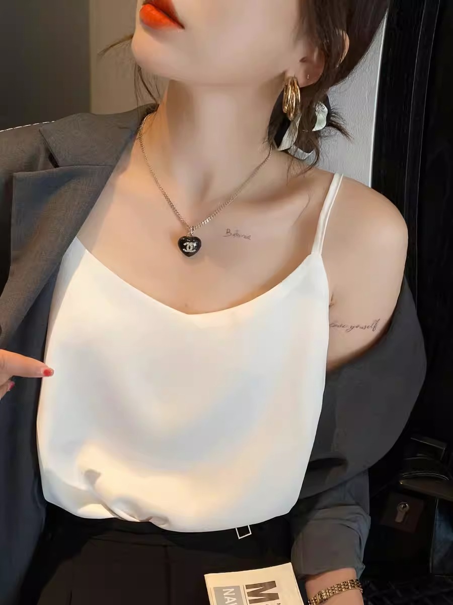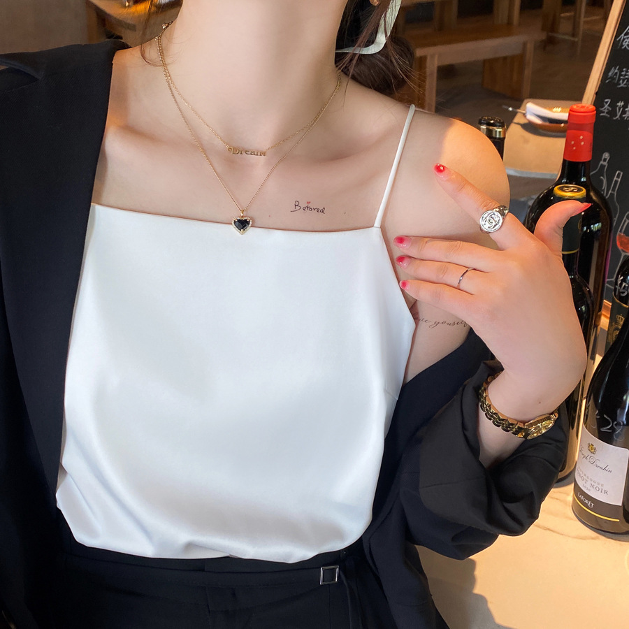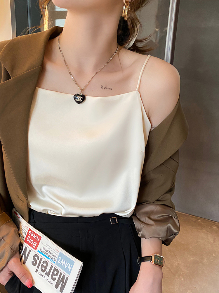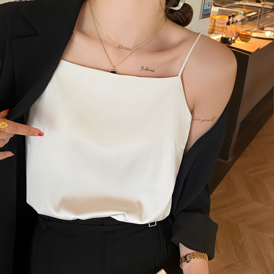吊带背心女内搭西装新款宽松遮肉打底外穿冰丝缎面真丝上衣夏