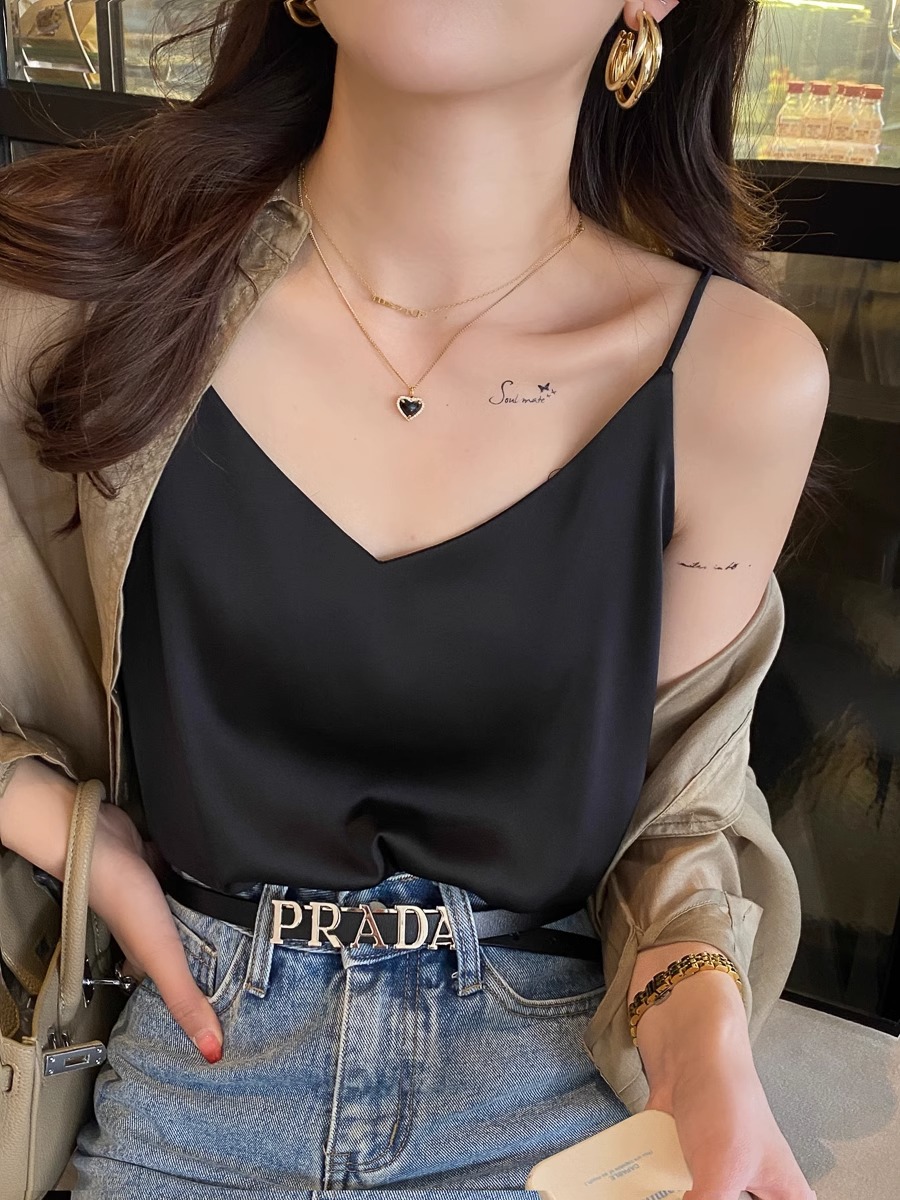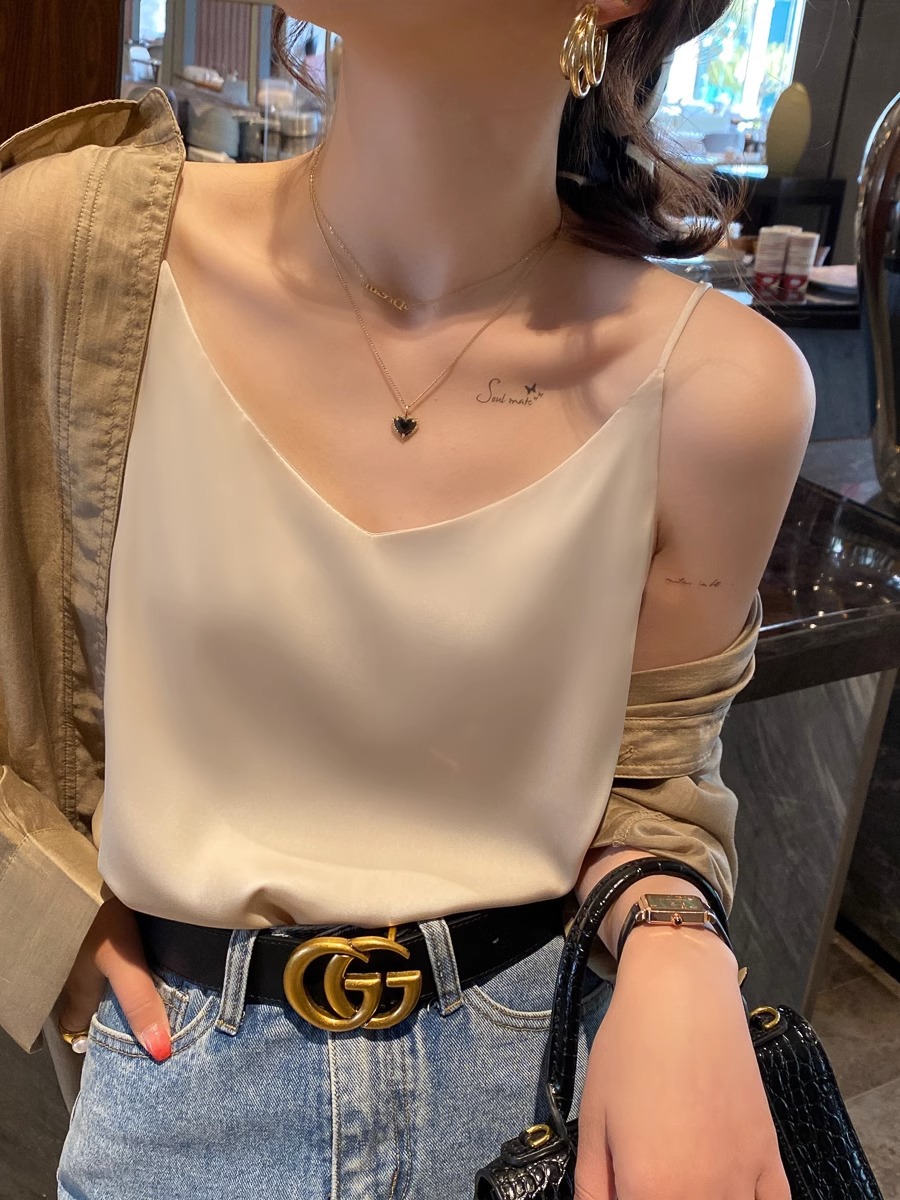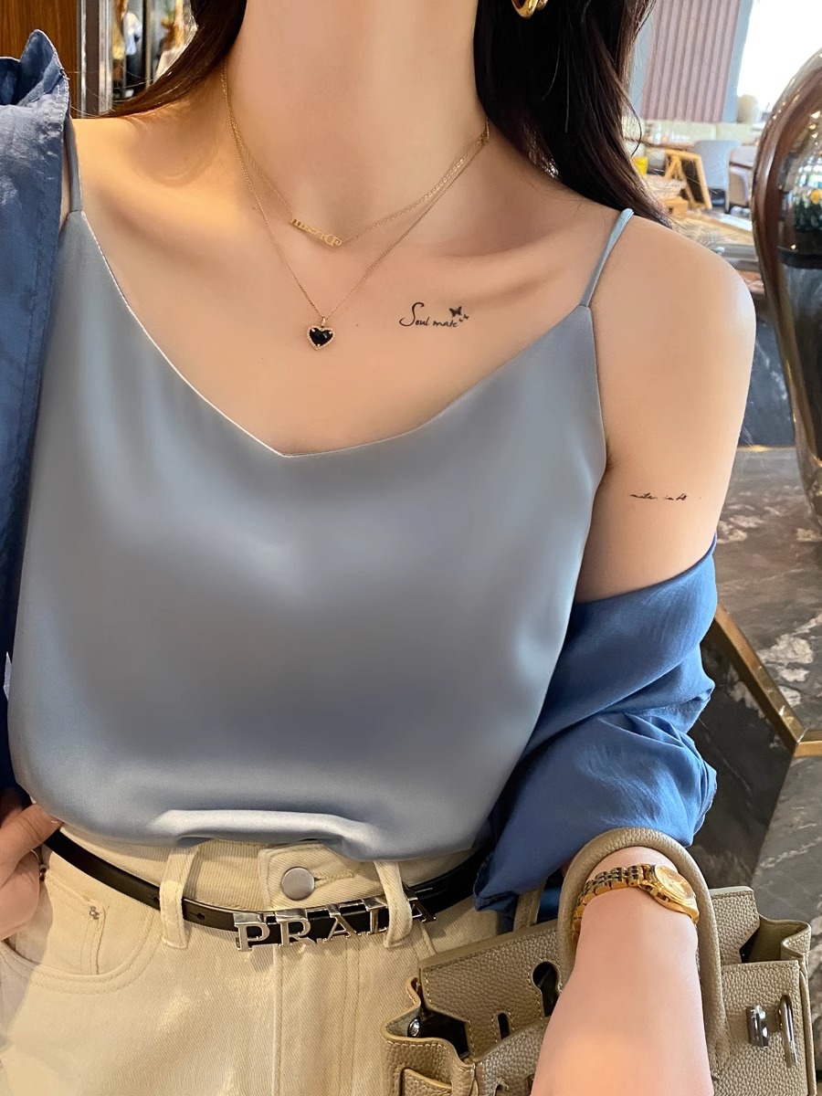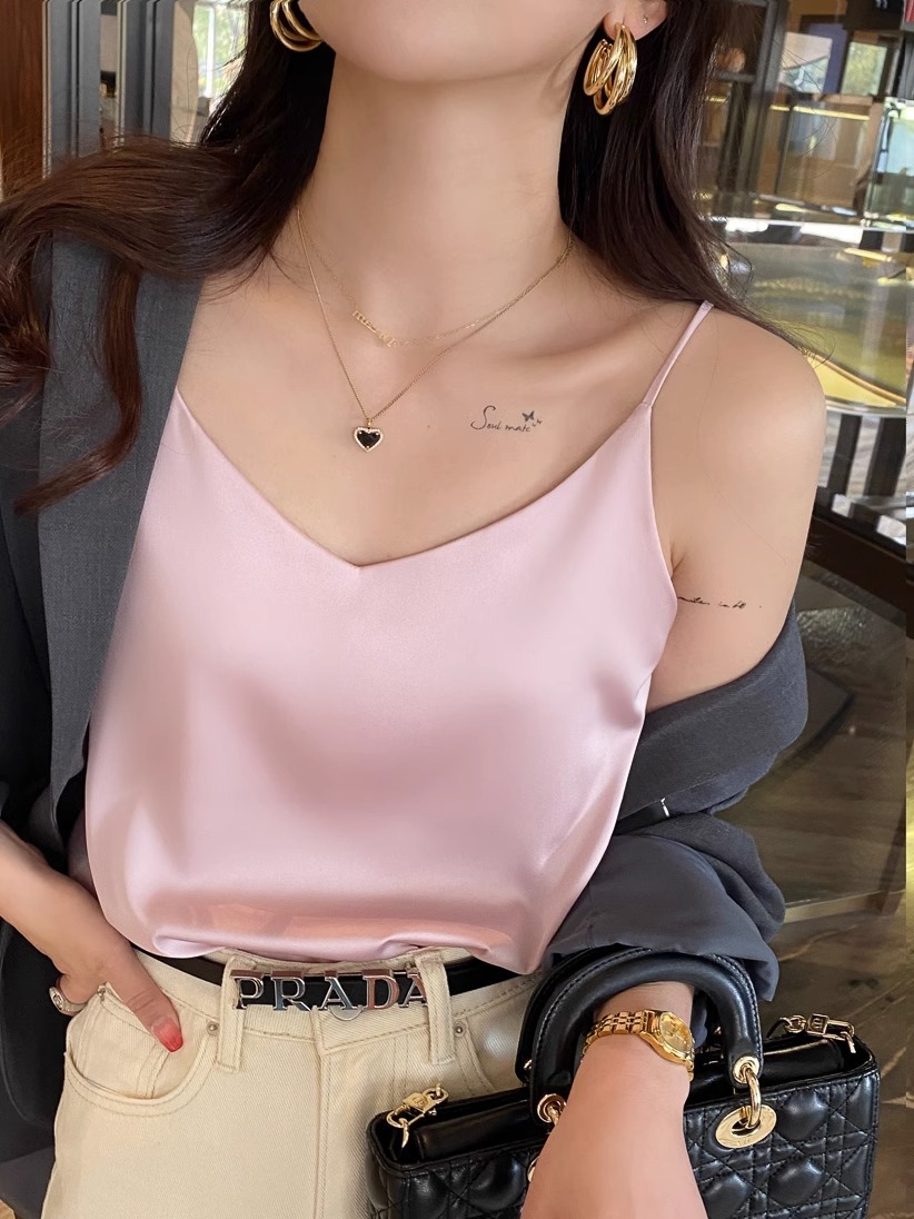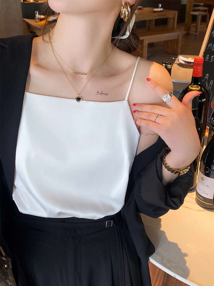 吊带背心女内搭西装新款宽松遮肉打底外穿冰丝缎面真丝上衣夏