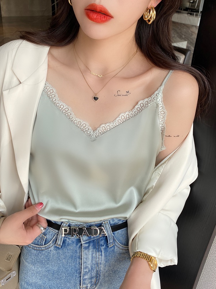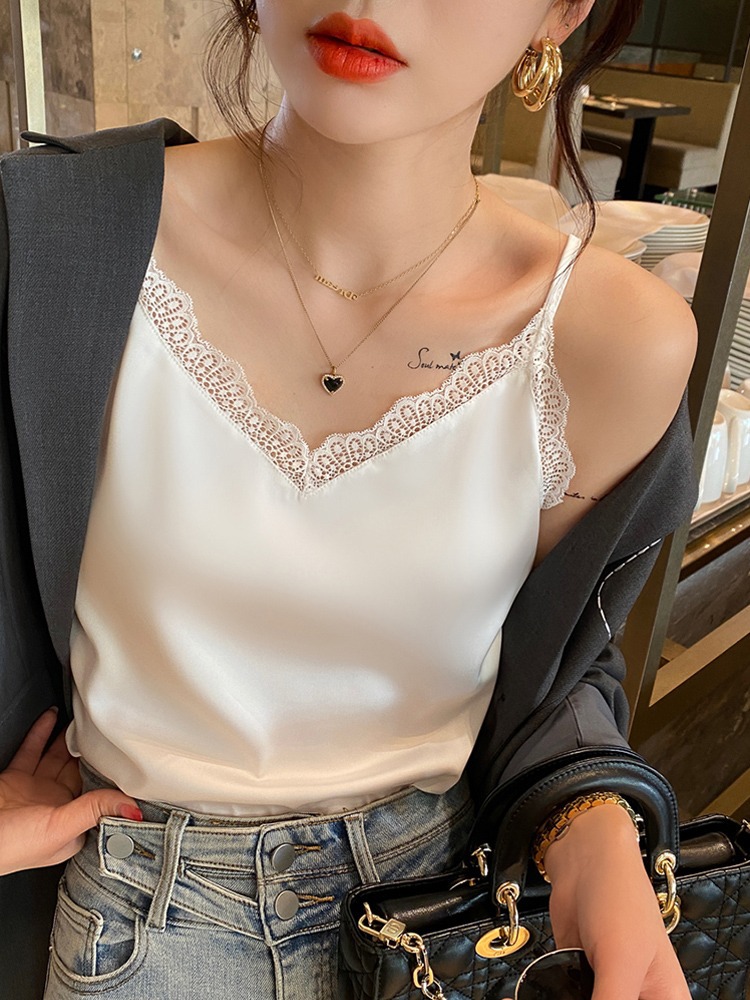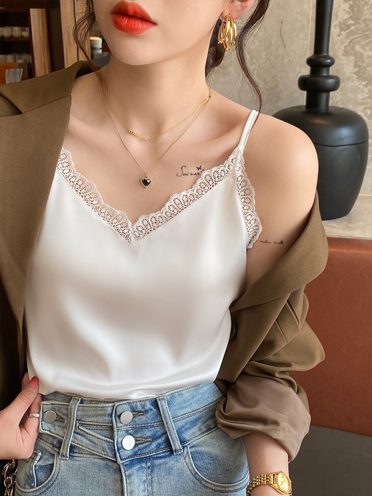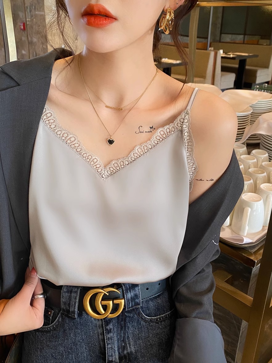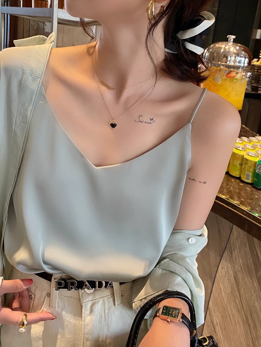 吊带背心女内搭西装新款宽松遮肉打底外穿冰丝缎面真丝上衣夏