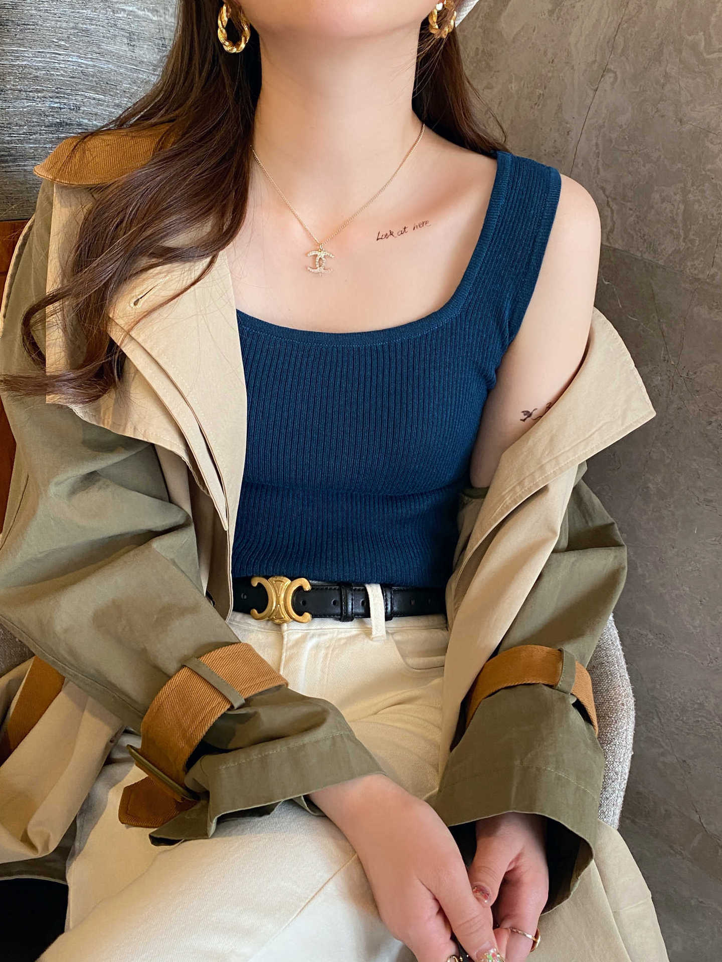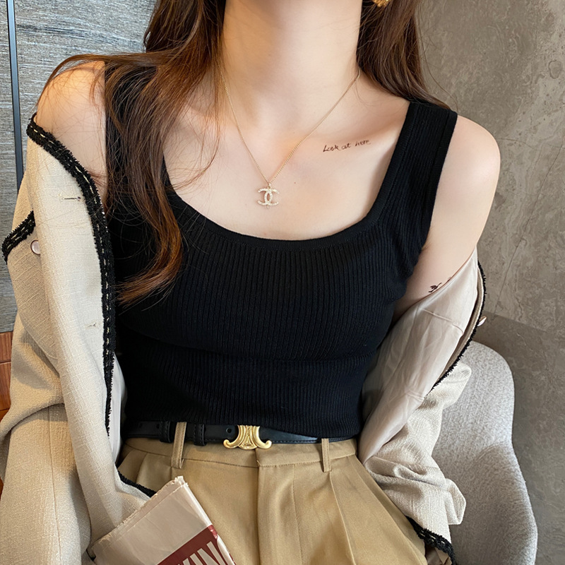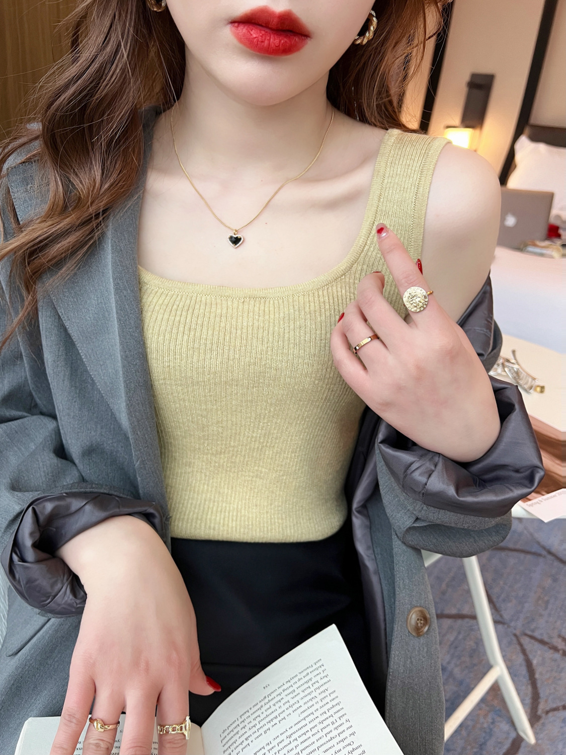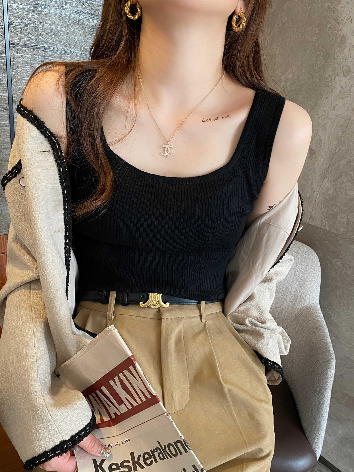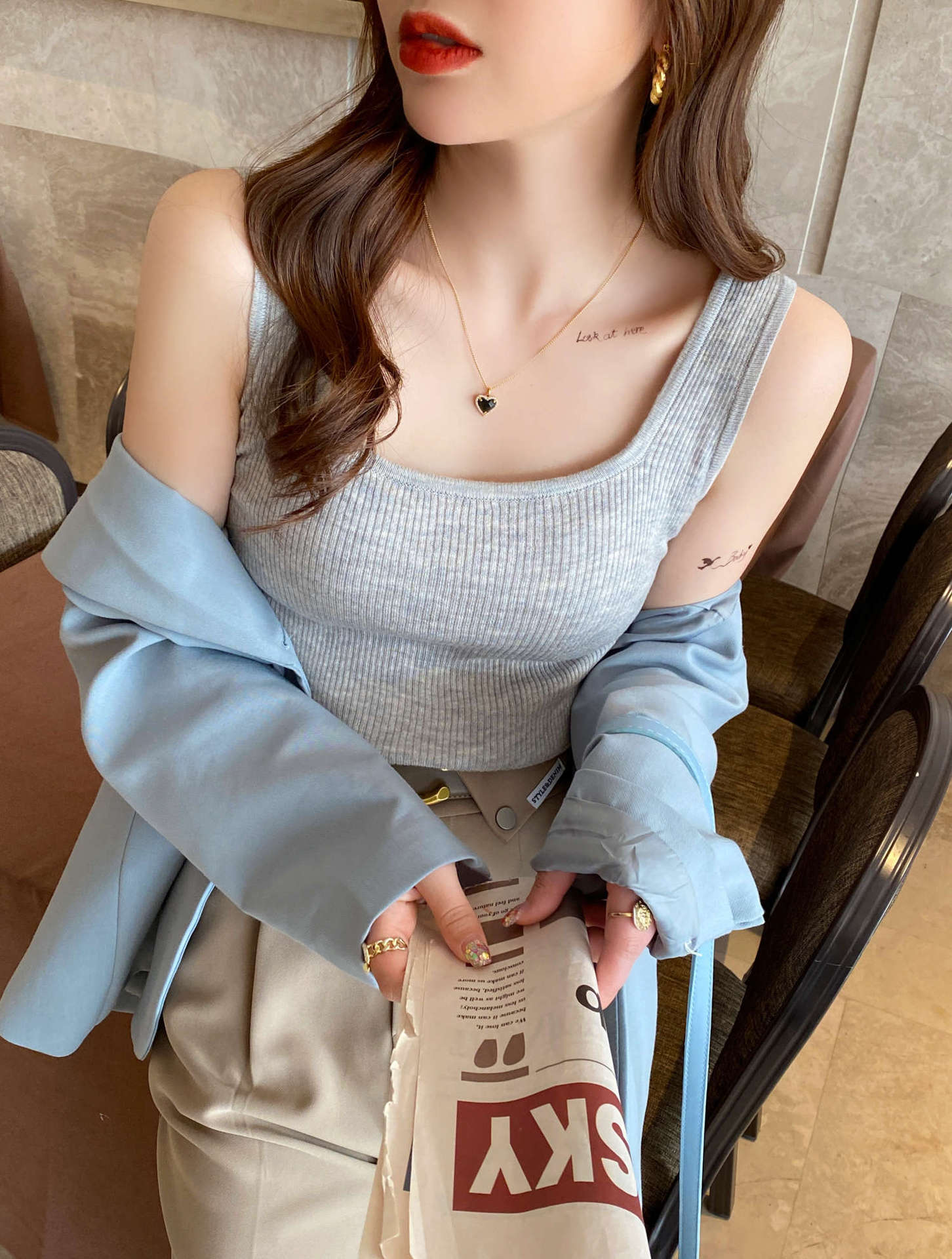 西装内搭吊带背心女修身外穿工字针织打底上衣新款U型无袖秋