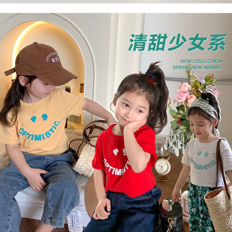 女童短袖纯棉洋气儿童t恤女童夏季宽松前后印花半袖上衣童装潮