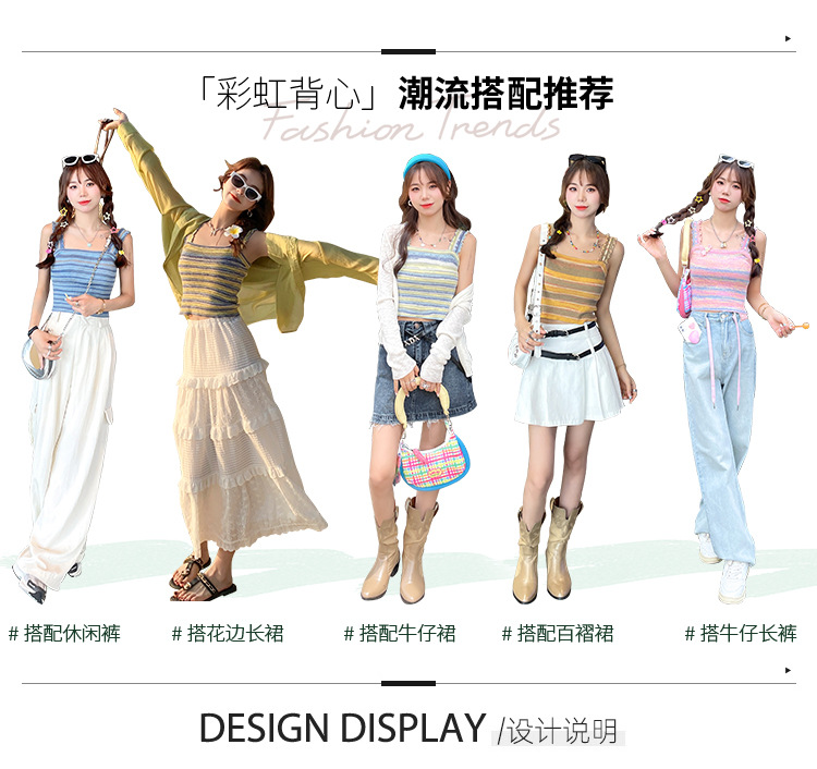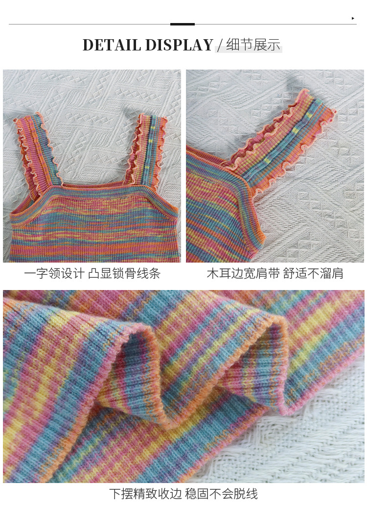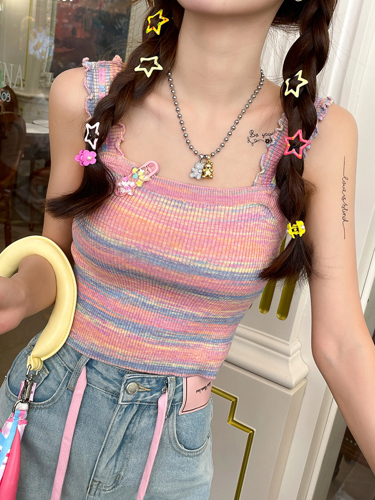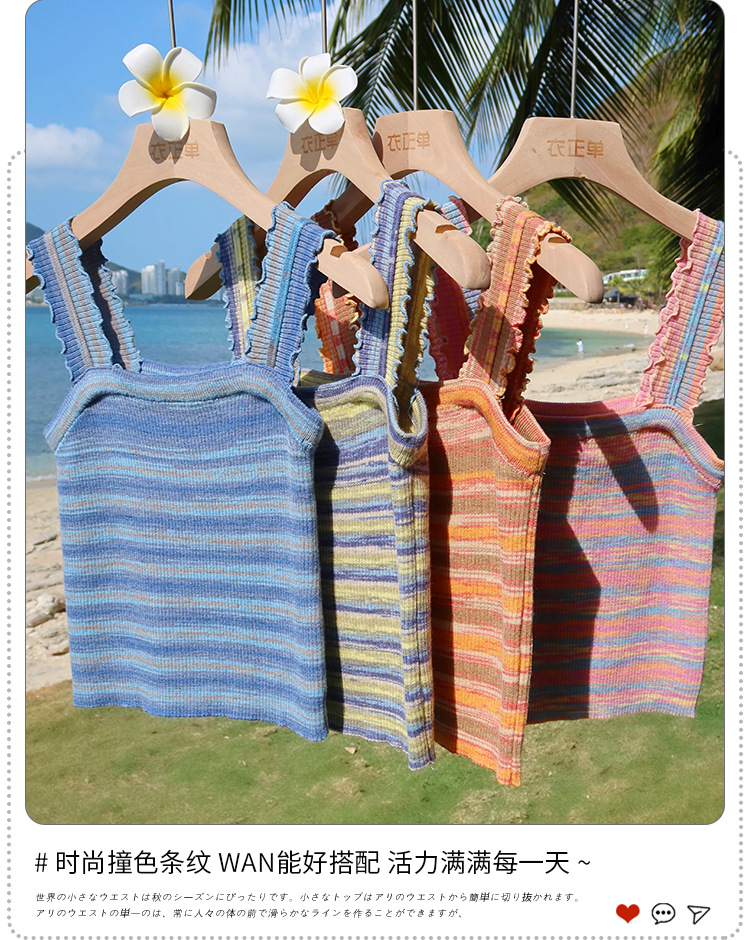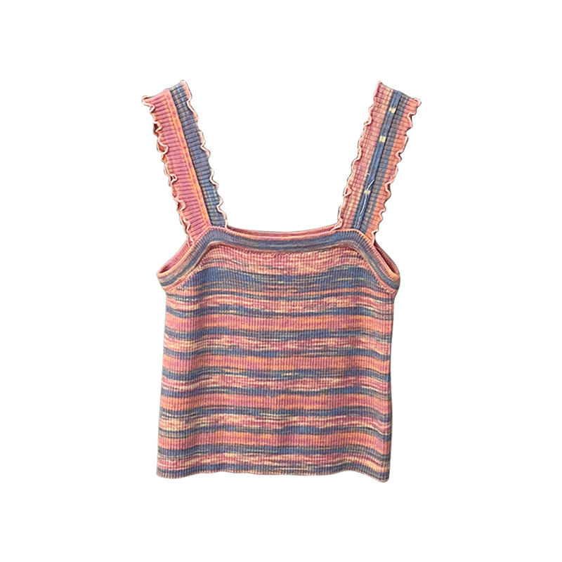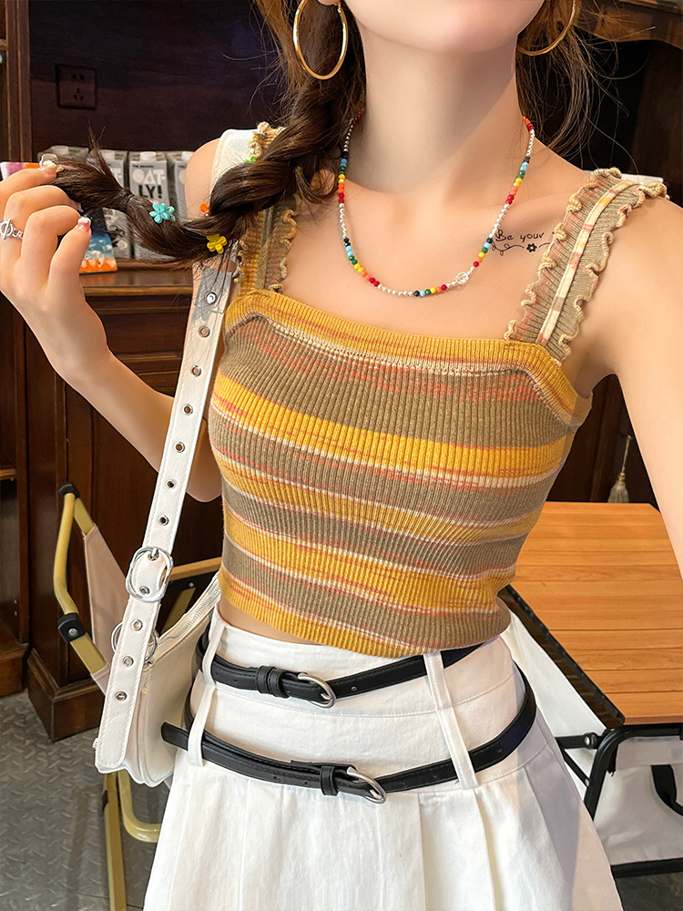 木耳边吊带背心女外穿夏新款设计感小众撞色针织条纹内搭打底上衣