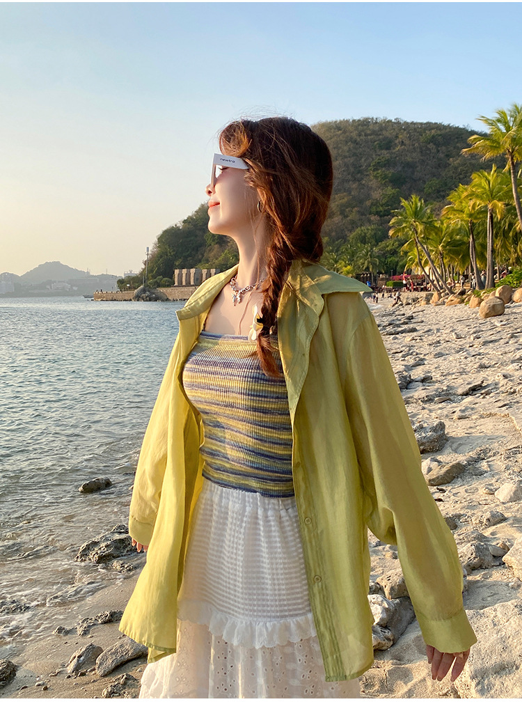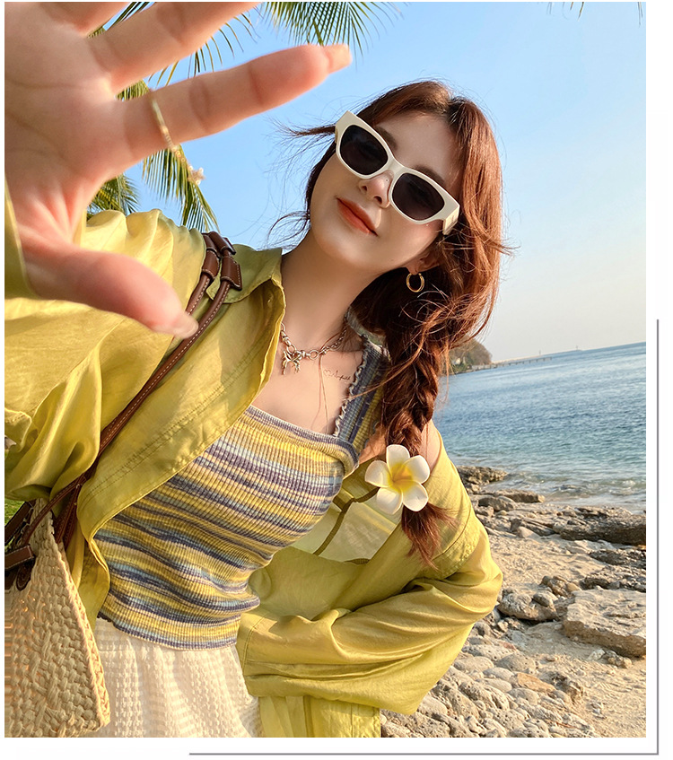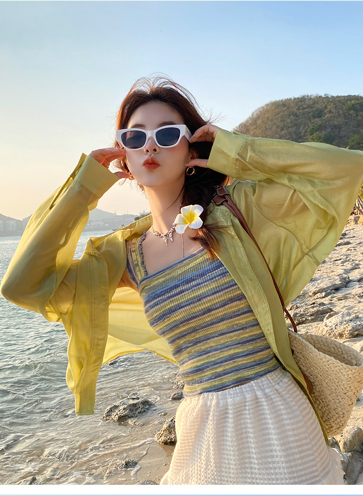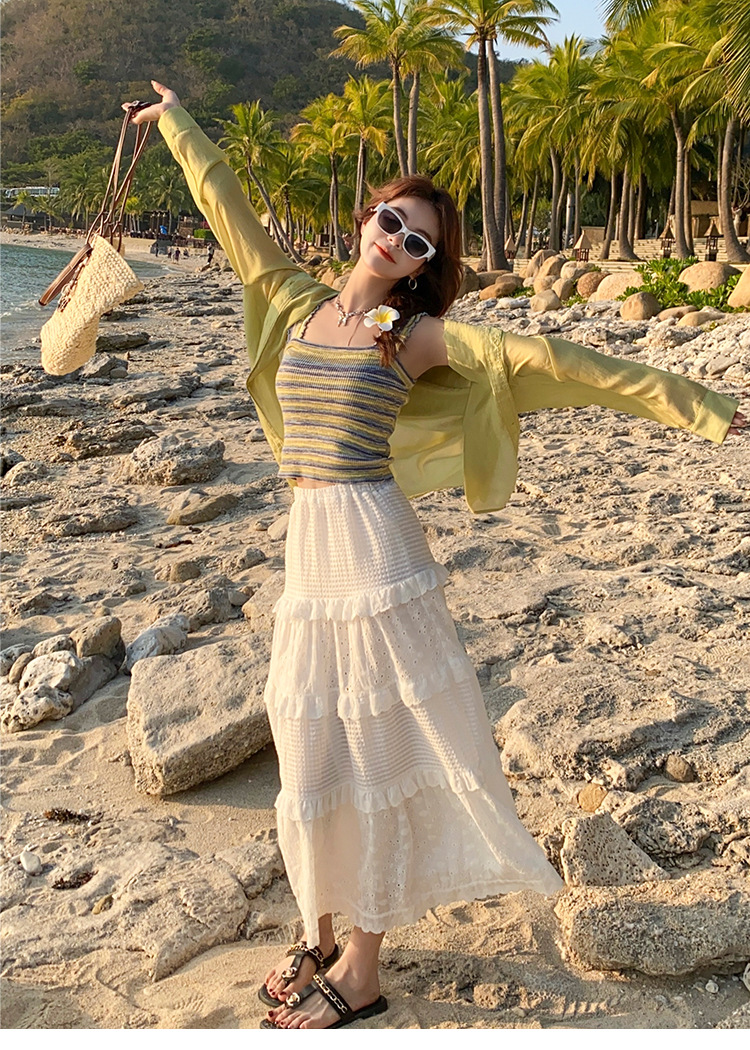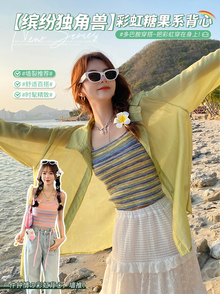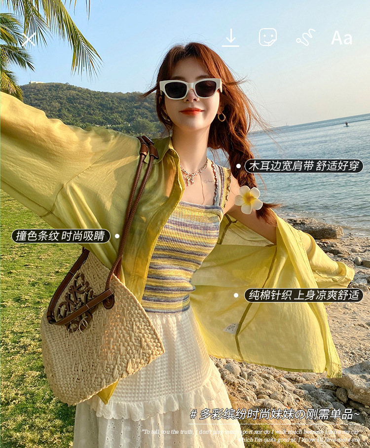木耳边吊带背心女外穿夏新款设计感小众撞色针织条纹内搭打底上衣