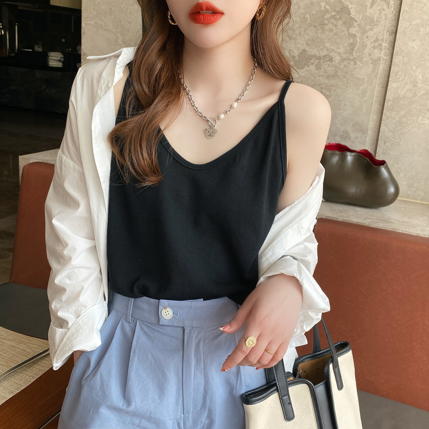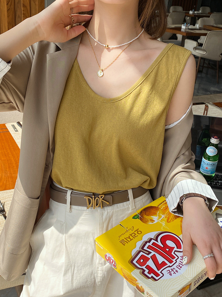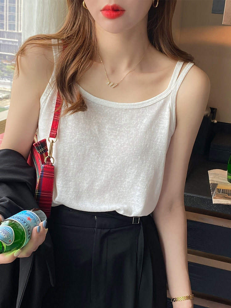 棉麻吊带背心女夏季外穿内搭工字打底白色宽松黑色棉麻上衣竹节棉