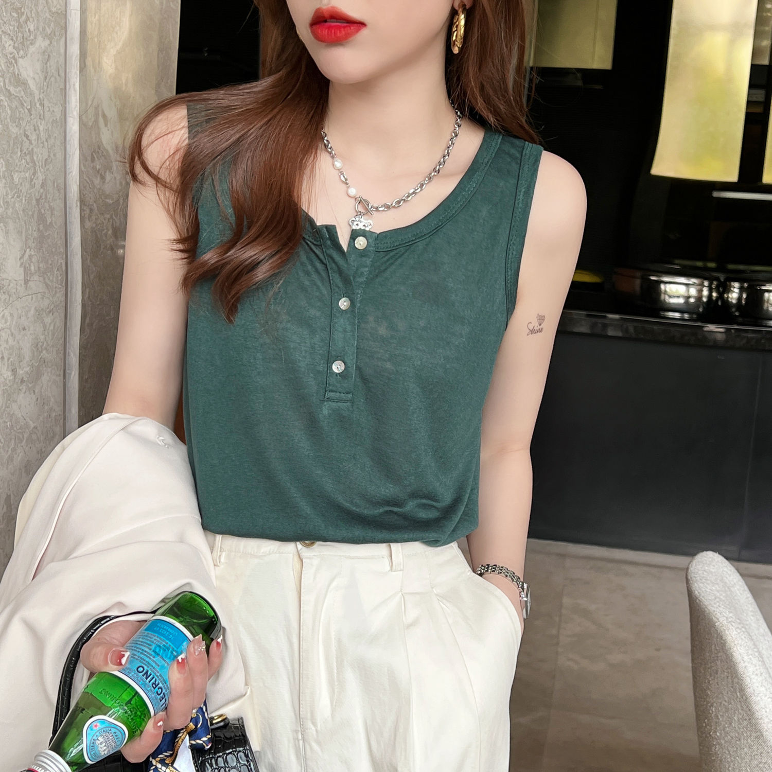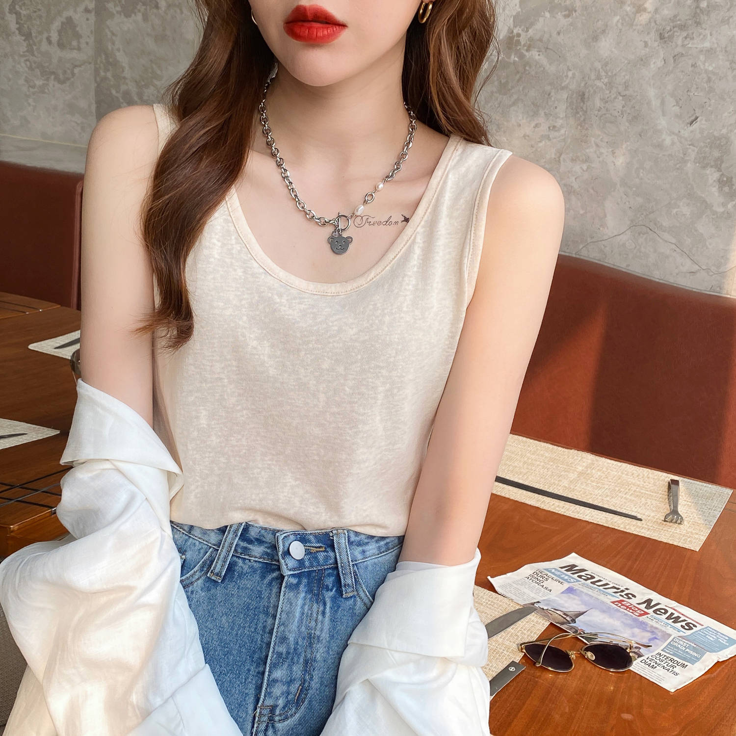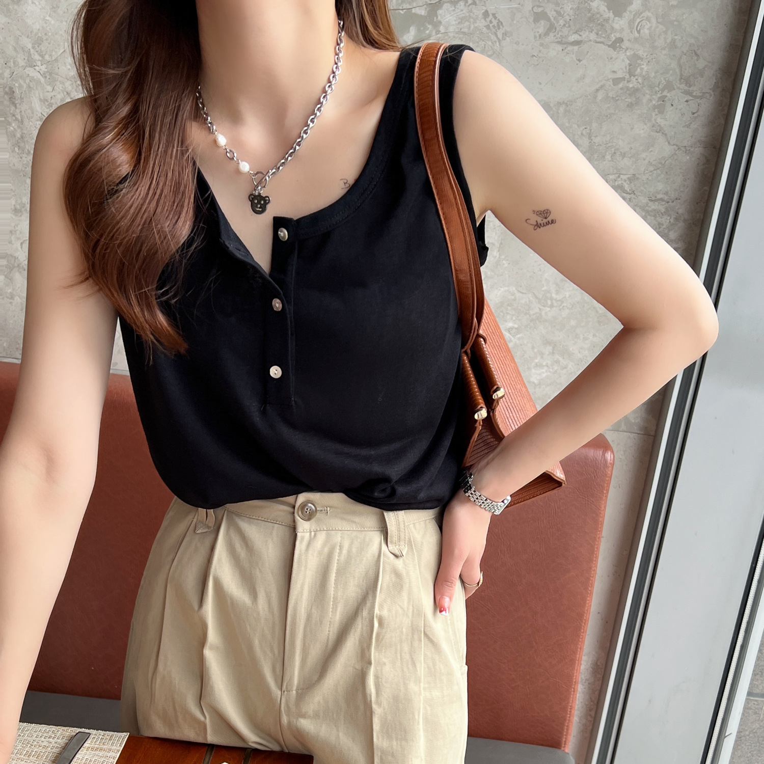 棉麻吊带背心女夏季外穿内搭工字打底白色宽松黑色棉麻上衣竹节棉