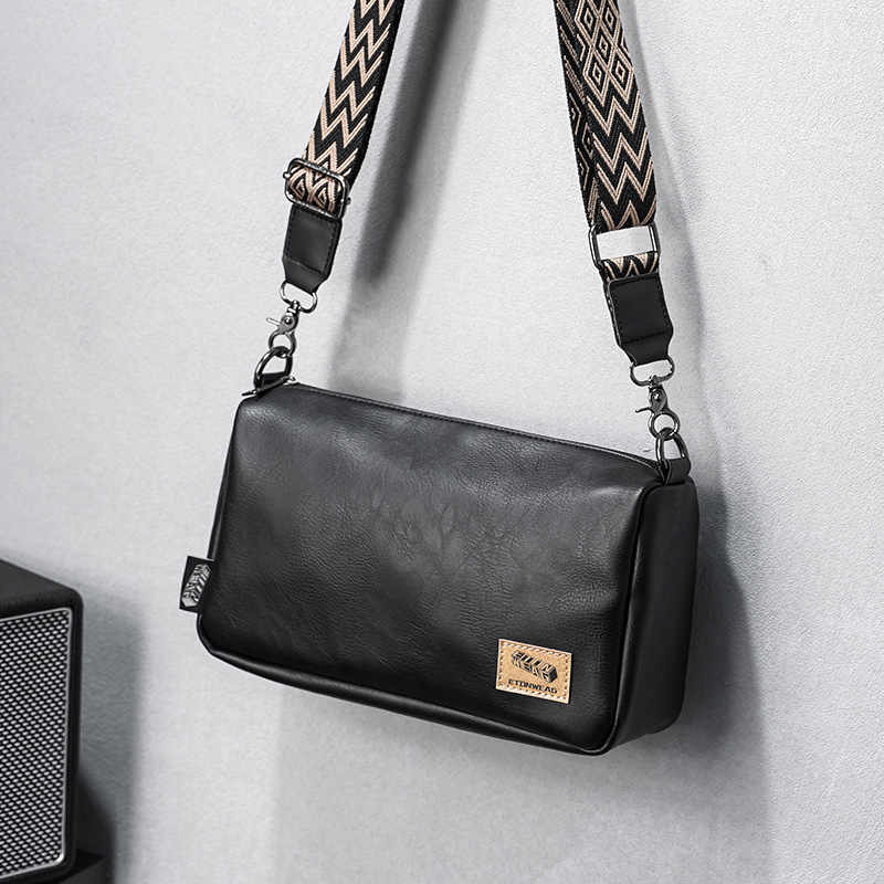 新款日系复古男士简约单肩包 户外百搭男挎包小方包男包