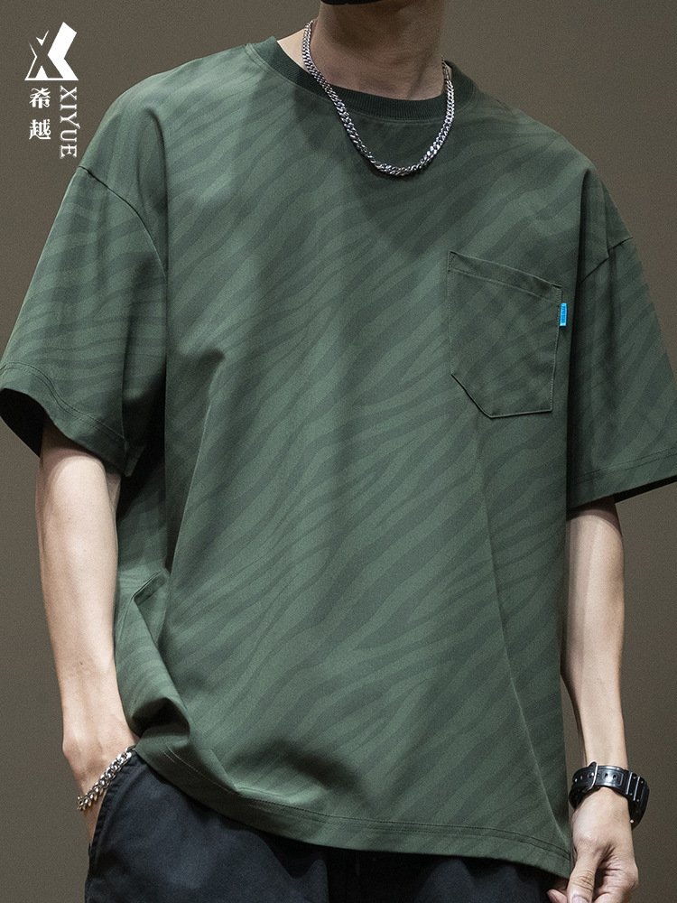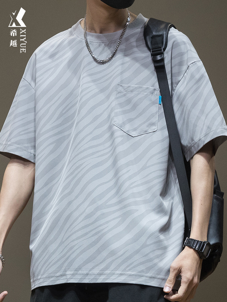 夏季冰丝短袖T恤男薄款速干带口袋上衣男士加肥加大胖子大码半袖