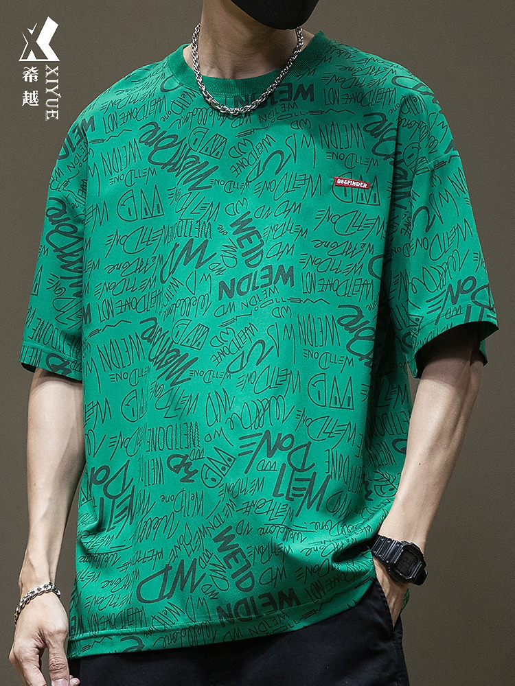 男童短袖棉质t恤夏季纯色印花新款宽松帅气卡通中大童半袖儿童潮