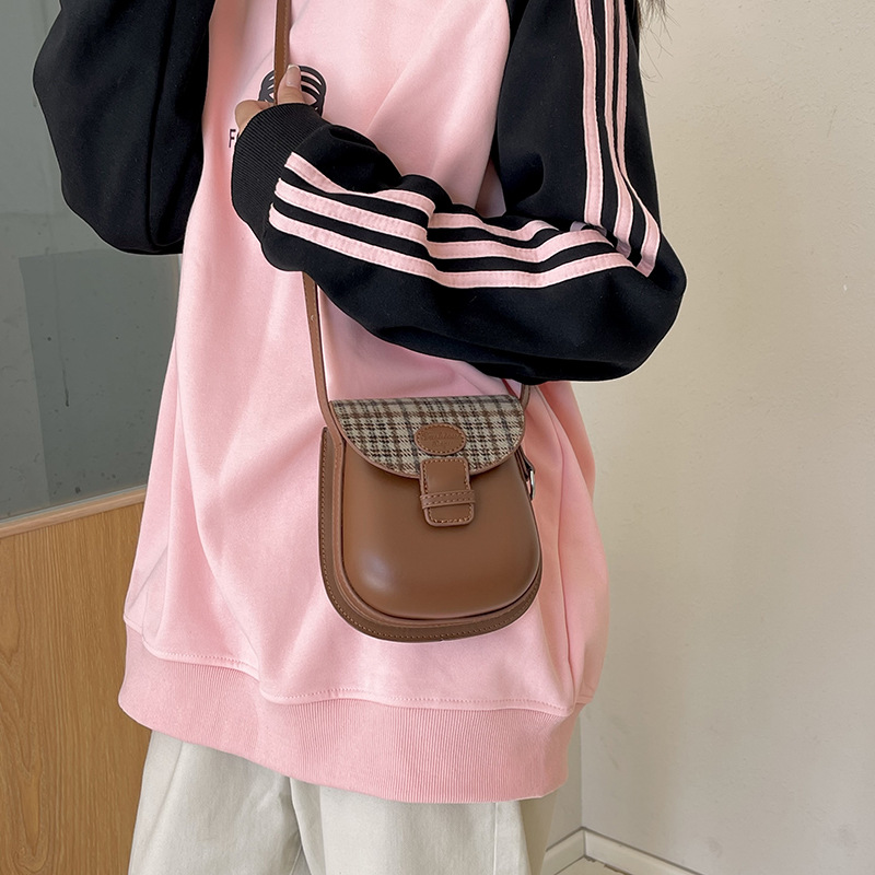 单肩包复古拼接撞色通勤马鞍包迷你装饰休闲小众设计通勤手机包