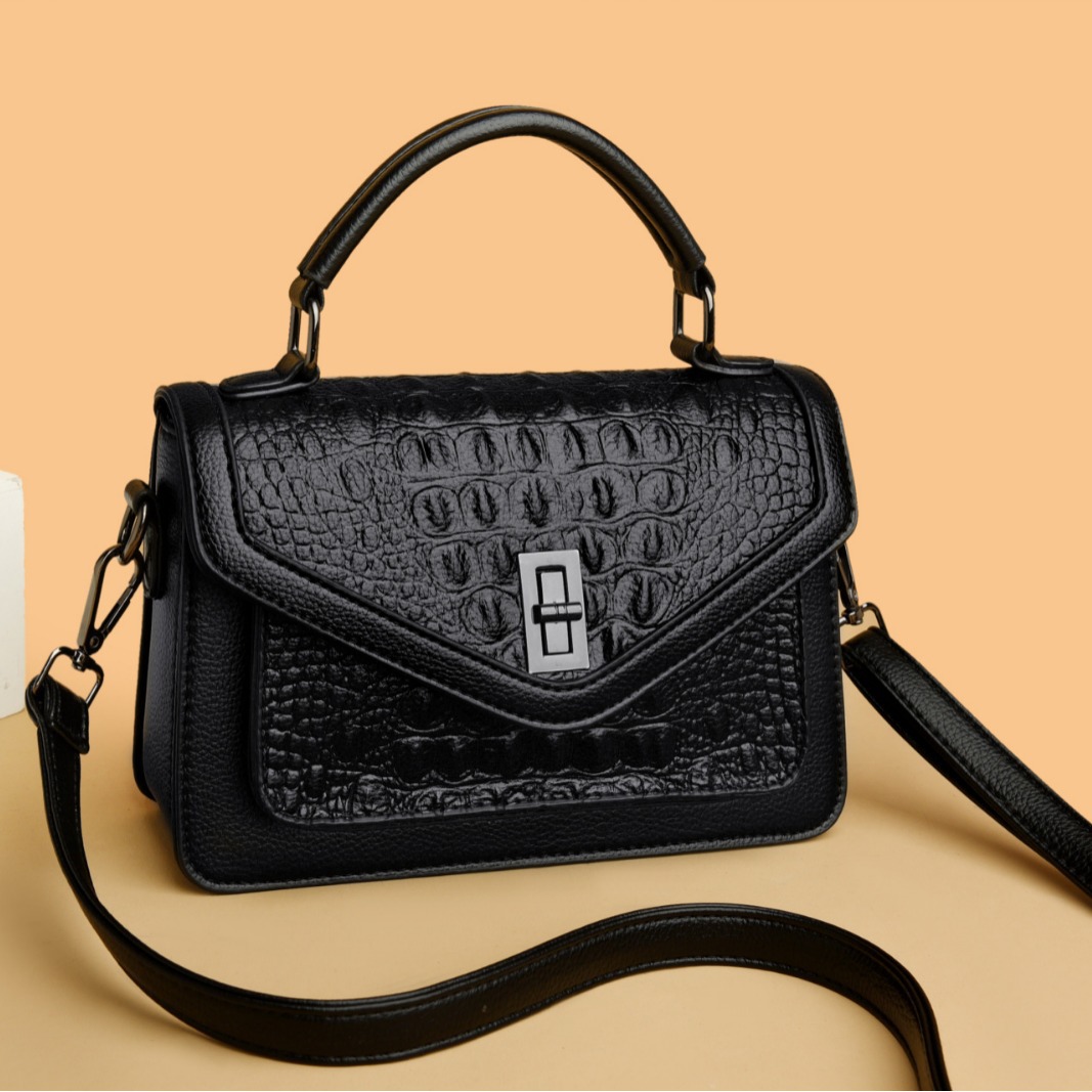 跨境欧美新款鳄鱼纹高级感复古百搭时尚手提小方包单肩包斜跨女包