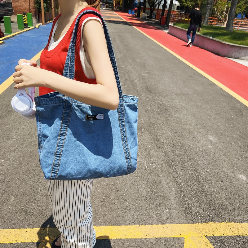 小众牛仔帆布包包女大容量休闲百搭单肩托特包ins韩风手提购物袋