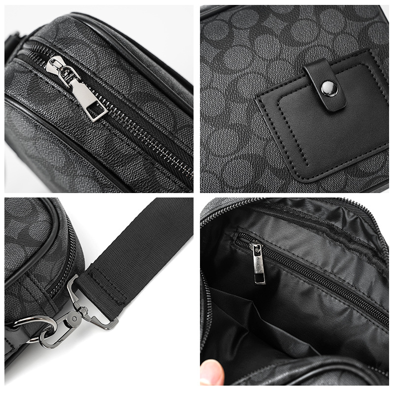 男包新款单肩格纹时尚斜挎包男士相机包ins潮牌小背包单肩包