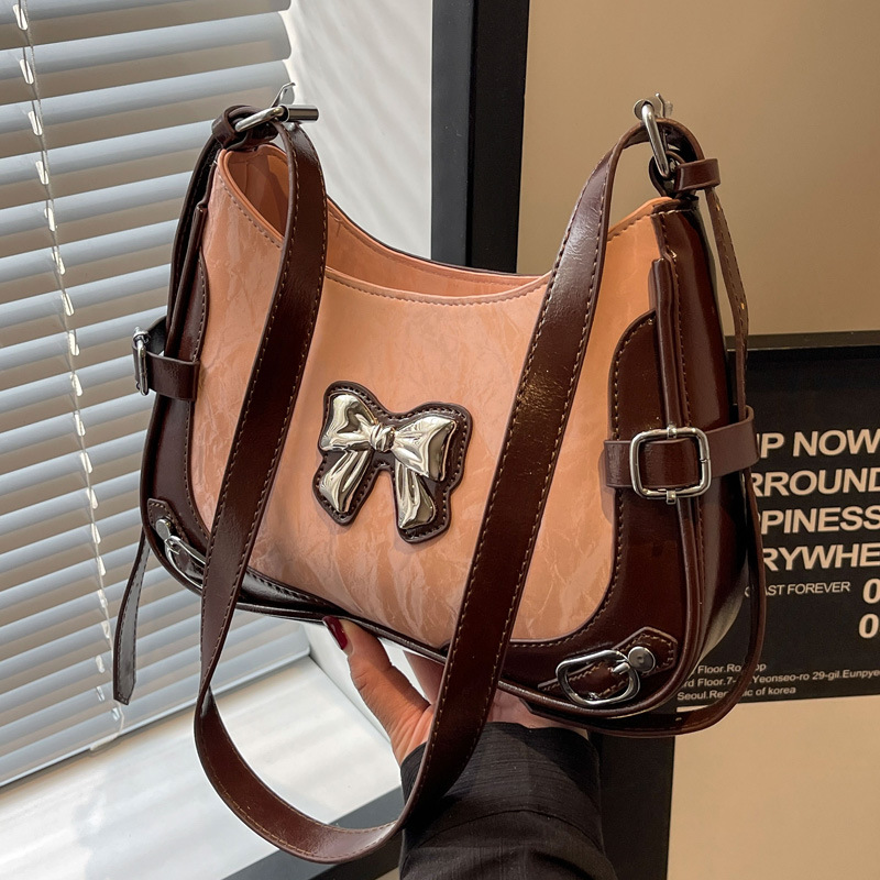 网红洋气腋下小包包女新款流行撞色斜挎包法式蝴蝶结通勤小包