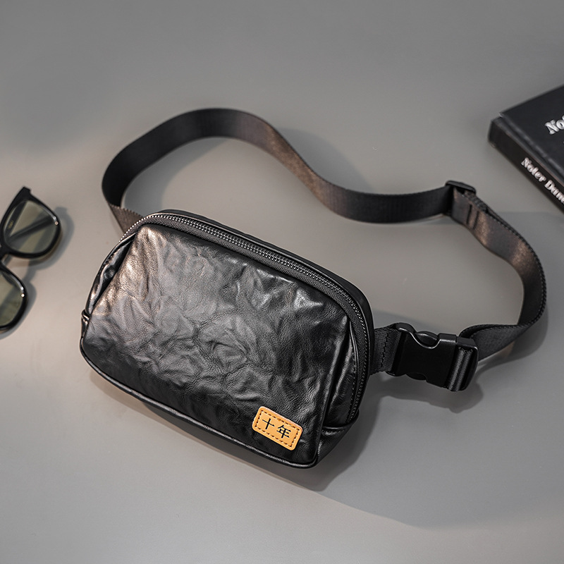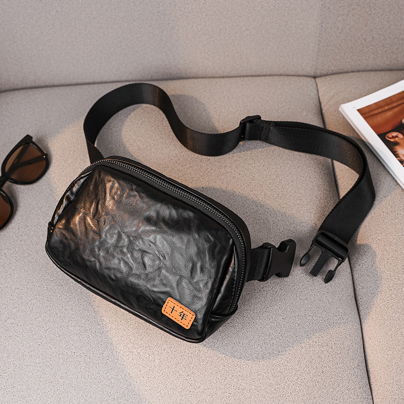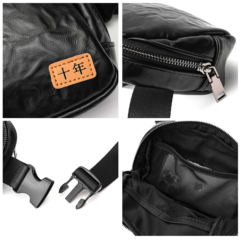 新款时尚男士单肩包潮牌简约小胸包 潮男横款手机包户外运动腰包