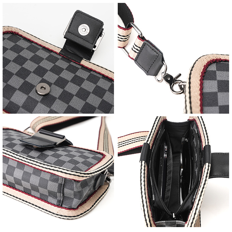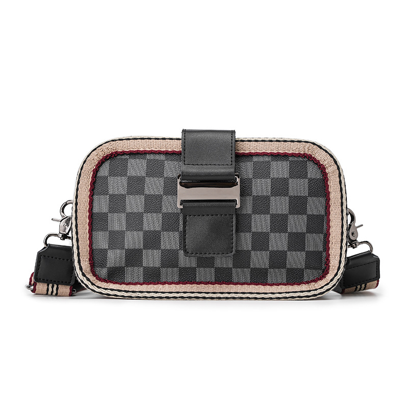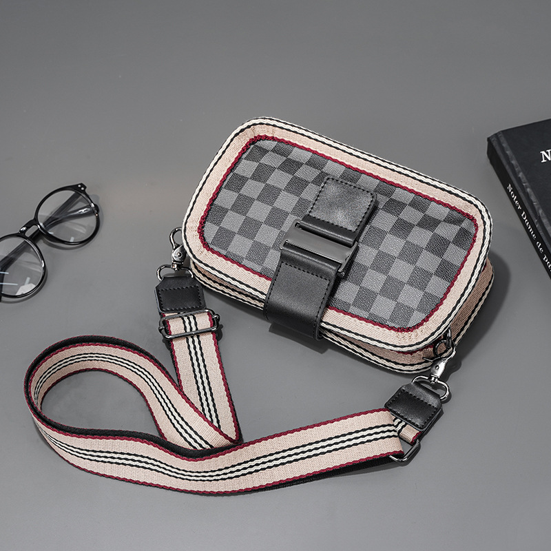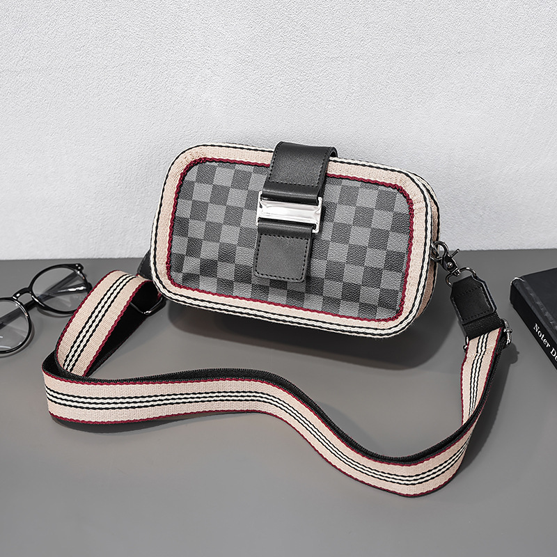 潮牌单肩包迷你方形小背包格纹男包时尚手机包休闲斜跨包户外挂包