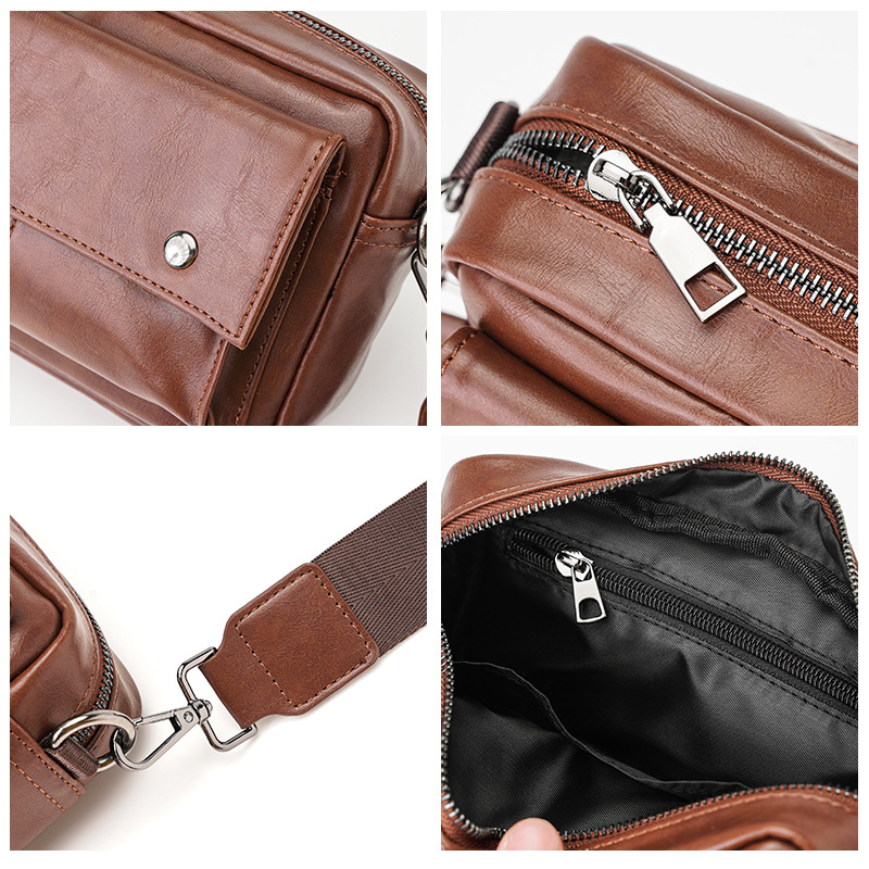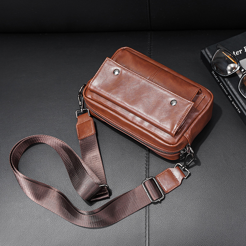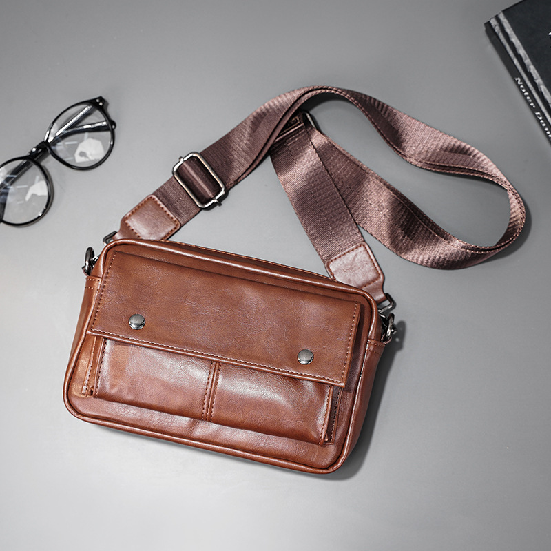 新款复古男包简约户外潮男斜跨包皮质小方包单肩包小包手机包