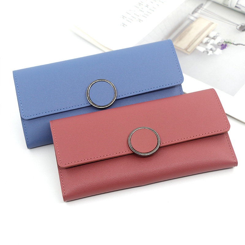 新款女士钱包长款韩版钱包简约手拿包pu三折搭扣零钱包多卡位卡包