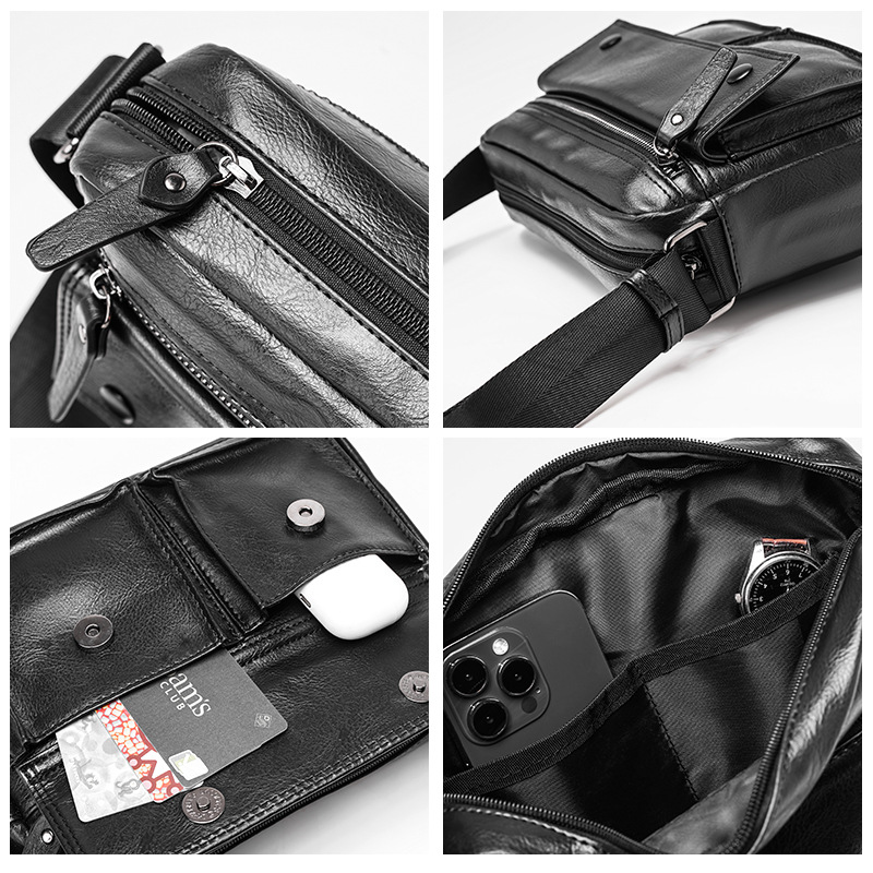 男士新款单肩包 时尚邮差包街头斜跨包潮流时尚机车包多口袋