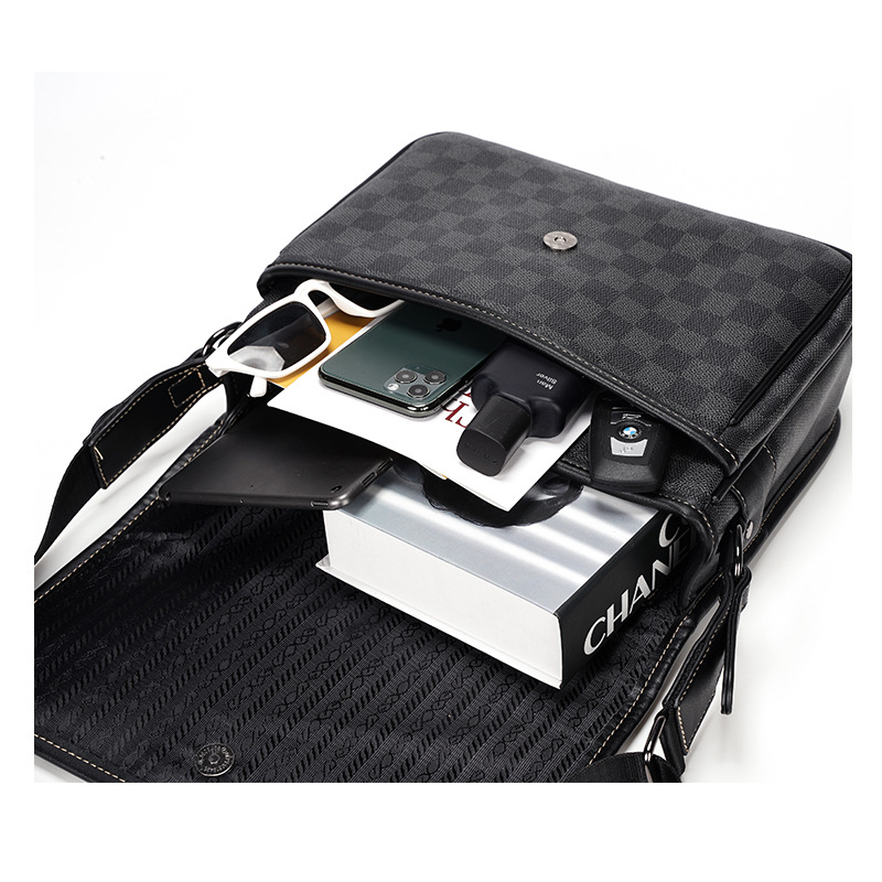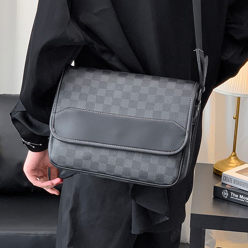 商务单肩包 新款男包格子斜挎包时尚休闲挂包潮流小背包