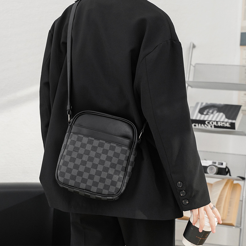 商务单肩包 新款男包格子斜挎包时尚休闲挂包潮流小背包