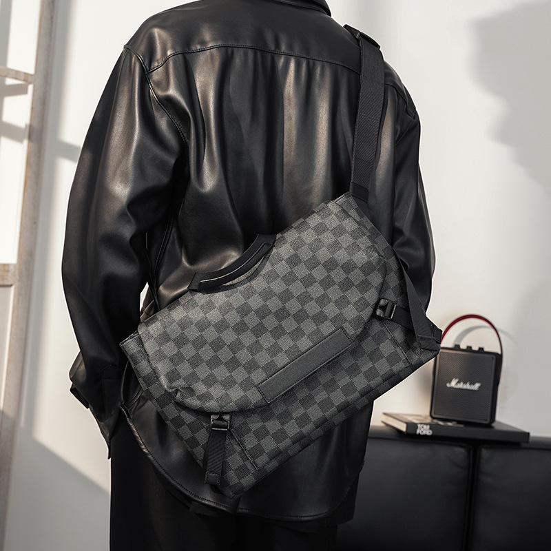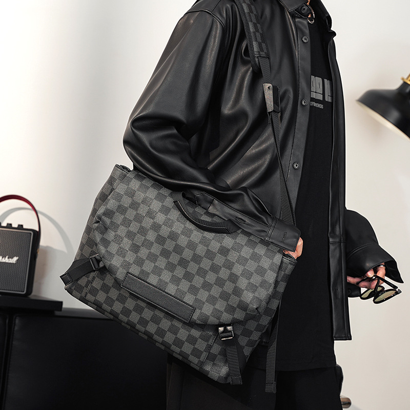 潮男时尚单肩包格子轻商务青年斜挎包电脑骑行包后背包