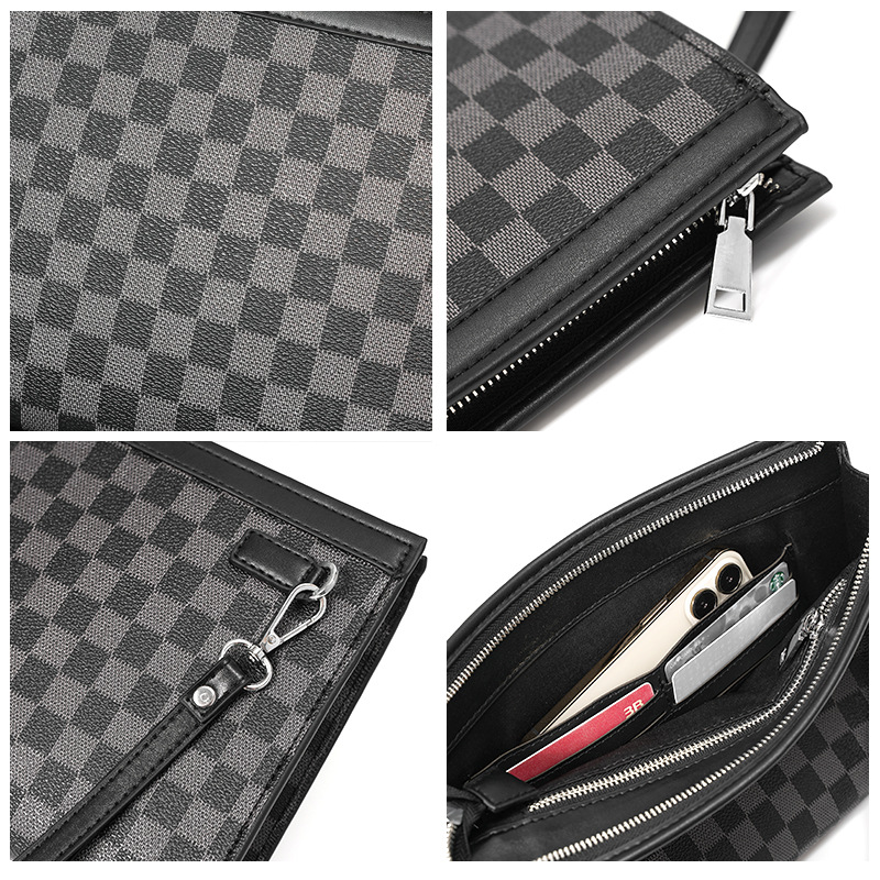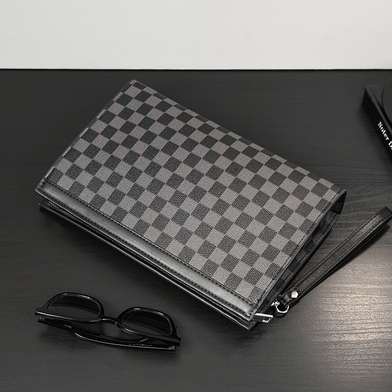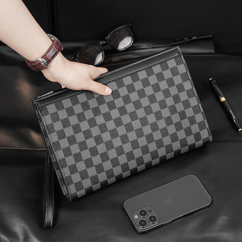 新款简约时尚男士手拿包格子信封包ipad包 韩版男包休闲包潮