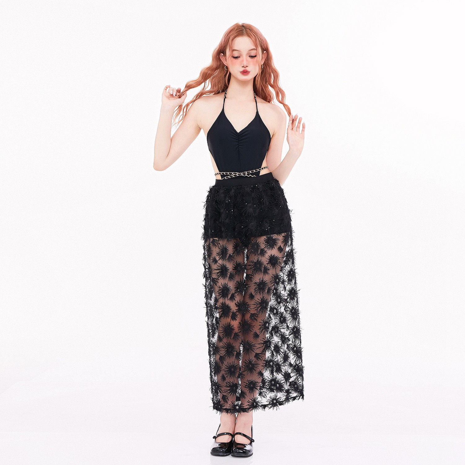 轻奢简约四件套泳衣半透镂空罩衫性感辣妹比基尼四件套分体泳衣女
