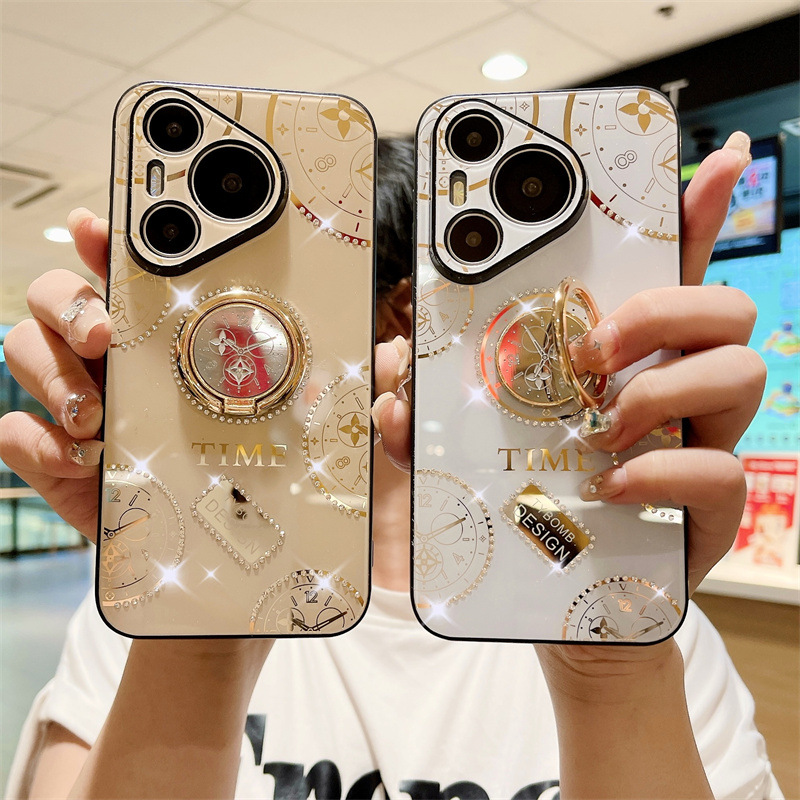华为P70时钟支架手机壳mate70镶钻荣耀X60防摔保护套