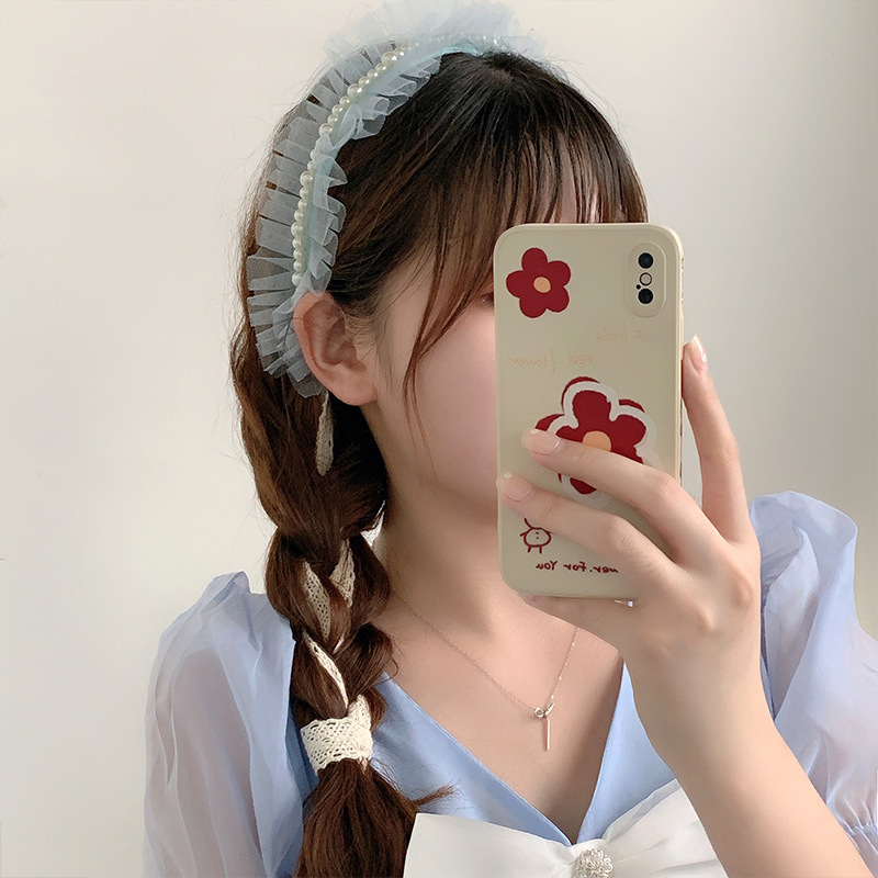 珍珠飘带发箍韩国网红不伤头新款公主绑双马尾头箍女童蝴蝶结头饰