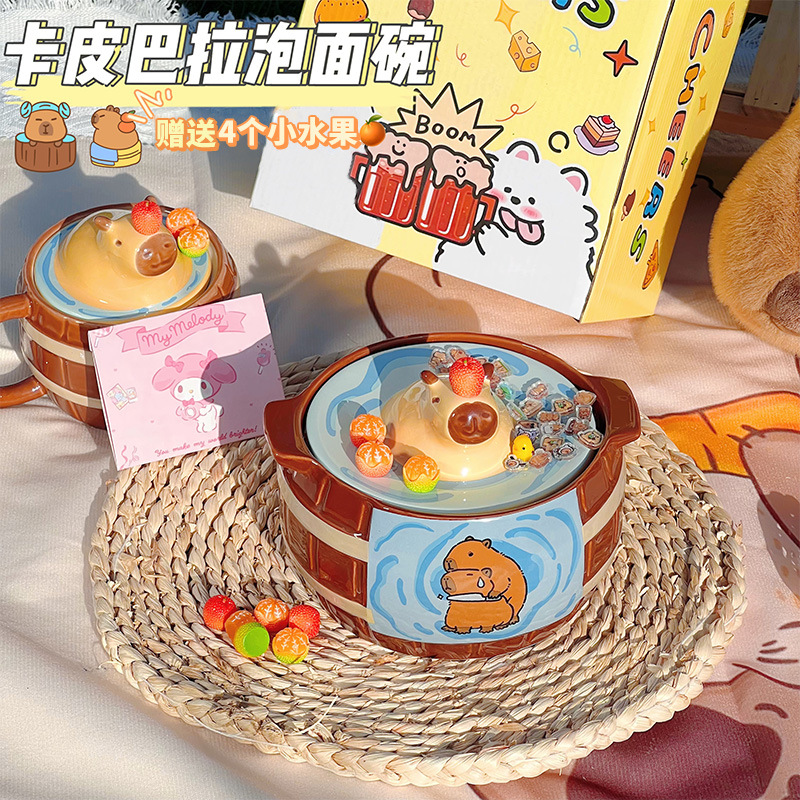卡皮巴拉泡面碗带盖陶瓷水豚饭碗个人专用