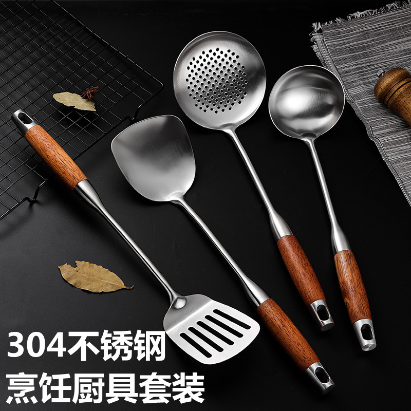梨花木柄304不锈钢厨具套装加厚长柄烹饪铲勺锅铲粉扒漏勺七件套