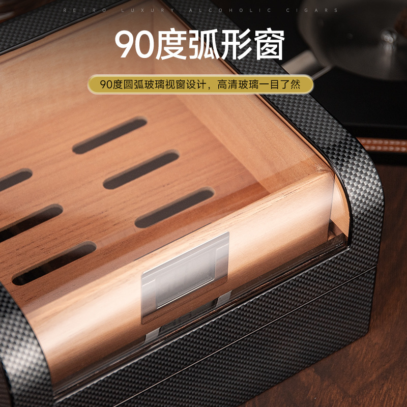 雪茄保湿盒便携透明窗雪松木双层大容量碳纤维雪茄盒