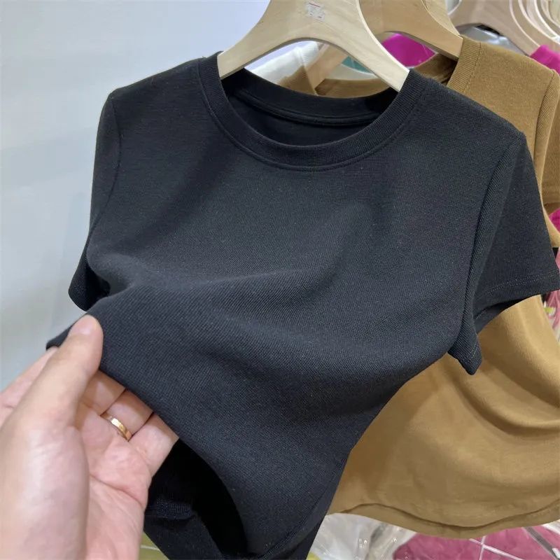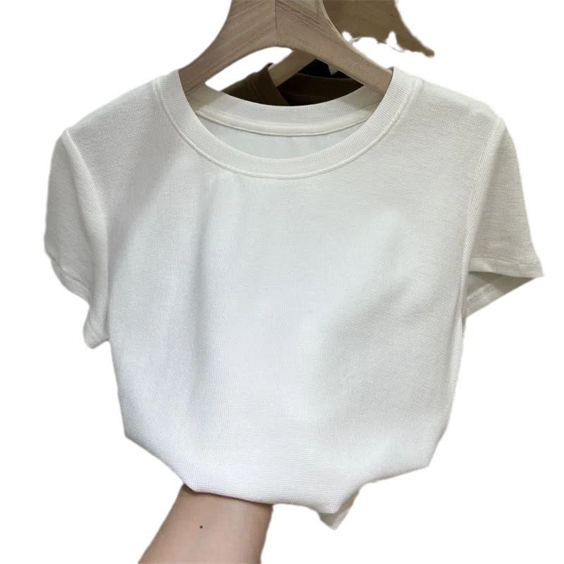 高档圆领面膜短袖T恤女夏装新款韩版纯色百搭修身打底衫上衣