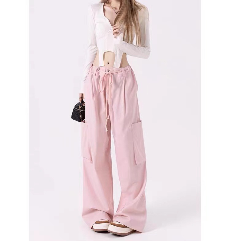 甜酷风辣妹美式工装裤女装宽松设计感小众休闲阔腿灰色裤子ins潮