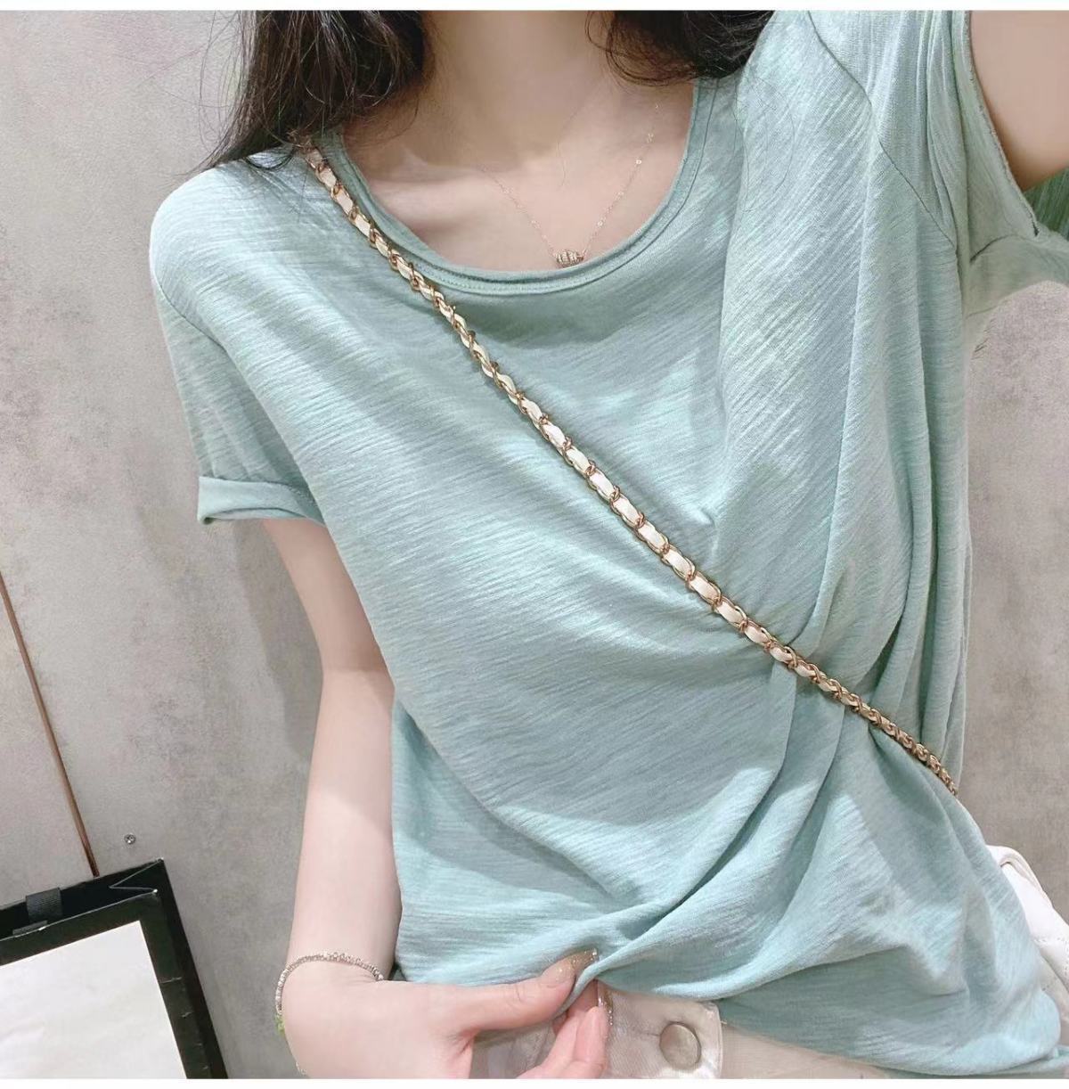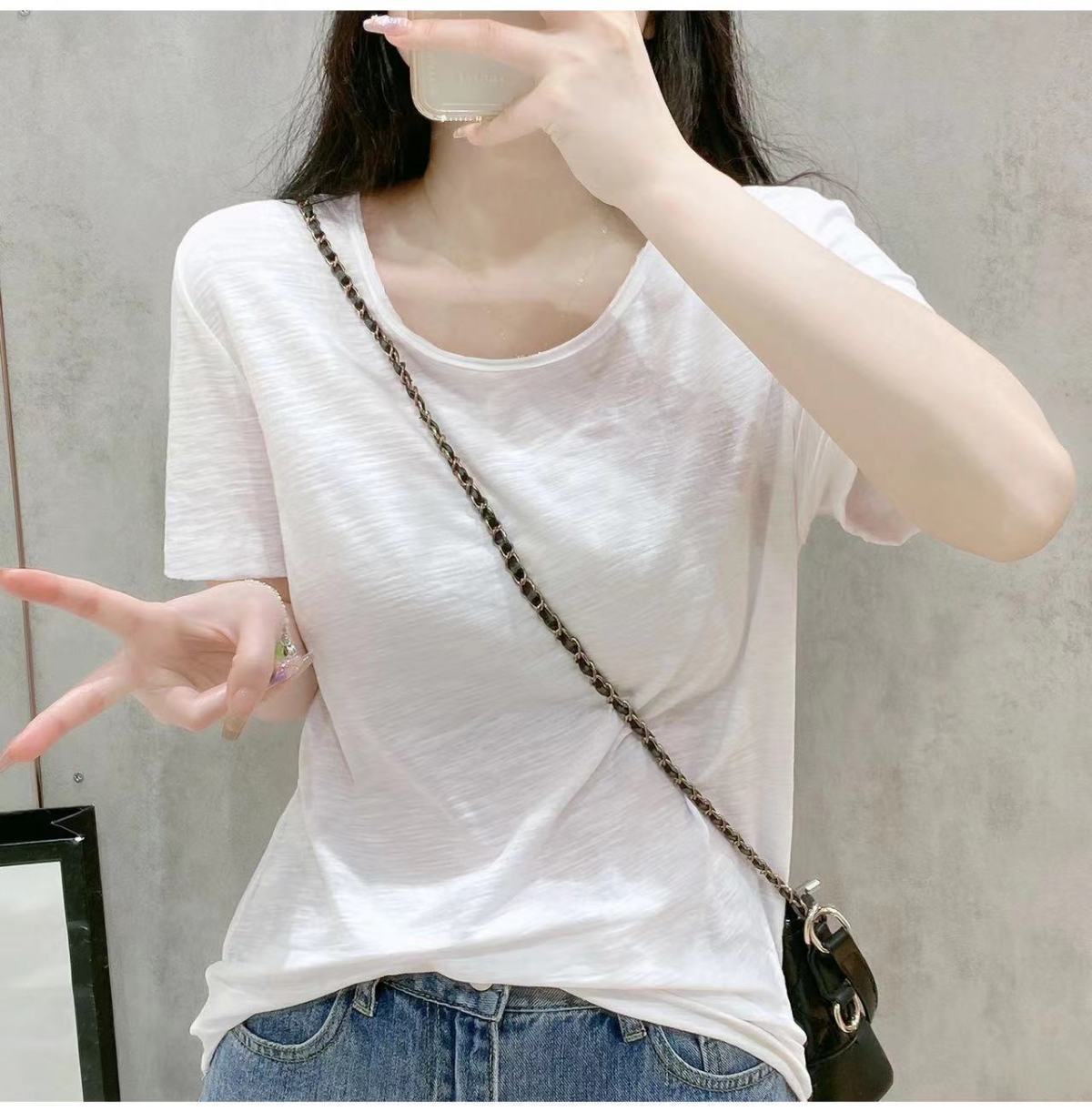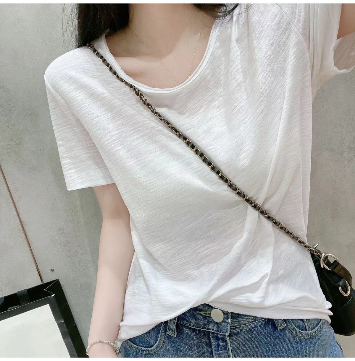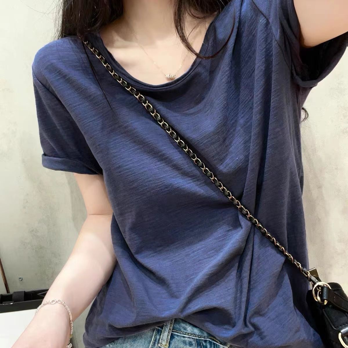 竹节棉卷边短袖t恤女夏季爆款纯棉宽松休闲圆领体恤百搭简约上衣